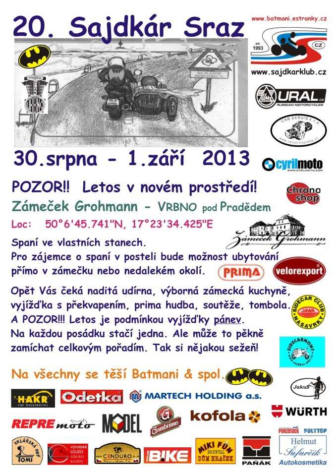:hand Ses proste asi tak nejak prdlej jak ja, Patas! Takze pristi rok spolu dame Sidecarsraz? Je to komorni akce. Neboj. Jinak bych taky nejel. Mohli bychom z mistnich sajdkaristu sestavit LR cetu.:bandit. Takze gratulace!