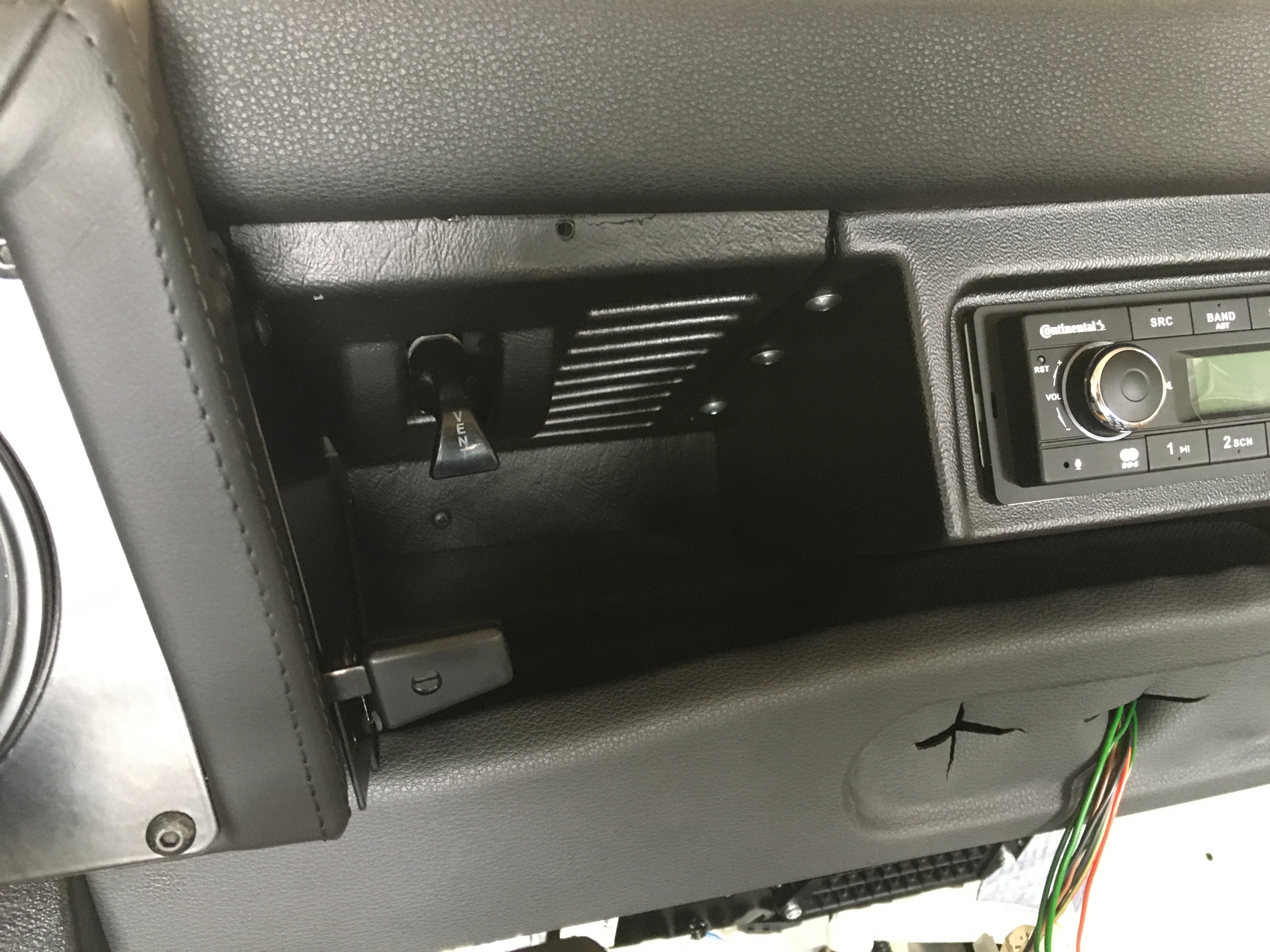 Mame tu mensi pokrok. Po vsech peripetiich jsem dorazil palubovku. Je tam teda jeste nejaka doladovacka, vymena srobu za cerne a takove detaily, ale to hlavni uz je. Velkou kapitolou je konzole na radio od mudu. Cca 3 hodiny jsem ji upravoval a vymyslel jak ji uchytit aby to nejak vypadalo. Vysledek posudte sami. Jeste cekam az prijde z Anglie lista a bude to cajk...