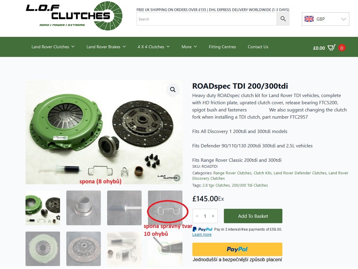 Jako novou spojku jsem zvolil sadu od L.O.F Clutches ve verzi Road spec pro 200/300TDi. Sada obsahuje vše potřebné pro výměnu.
