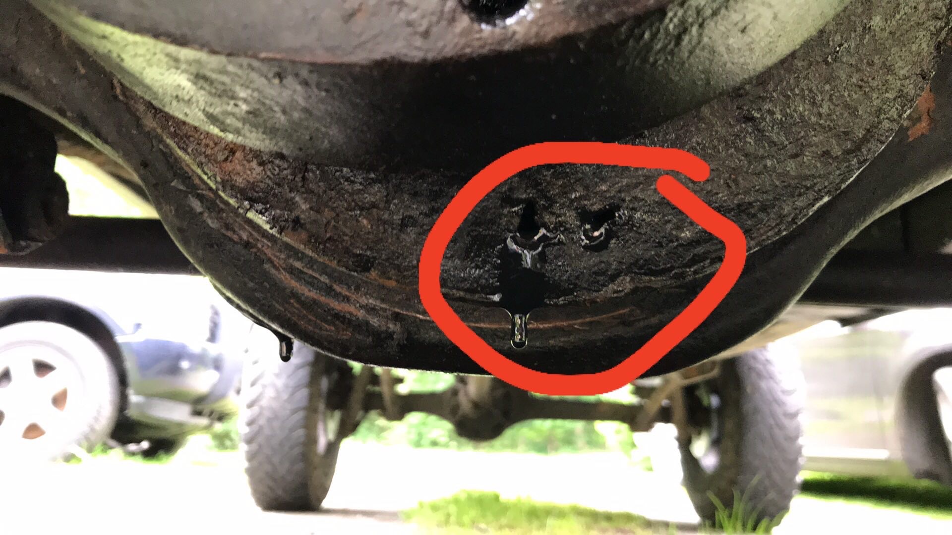 Tak jsem byl dnes trošku v šoku. Po sundání krytu diferáku jsem objevil díru a pak šroubovákem udělal druhou