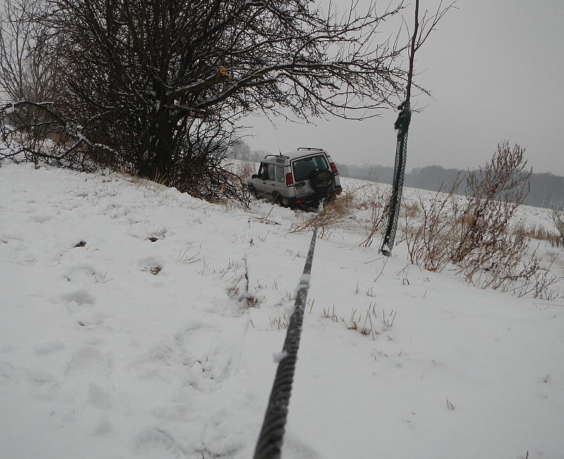 Dnes Free2 Pv-Uherský Brod a zpět bez problému, pouze s objžďkami kolem ucpaného Zlína. Po návratu ale telefonát a pro změnu jsem zase dneska tahal kolegu já. Zapadl s D2 asi v metrové závěji bez lopaty a bez lana. Jasně...:Ja blb: :mrgreen: . Vzal jsem do Defa kladku, kotvu do země, lopatu a normální i dynamickou kurtnu. Nedřív jsem to americkým slabochem trochu cukl dozadu a potom dynamikou přes břeh s rozjezdem vytáhl na pole kde už skoro žádný sníh nebyl. Úplně jsme zírali, jak ta dynamická kurtna funguje! Super. :Pohoda: