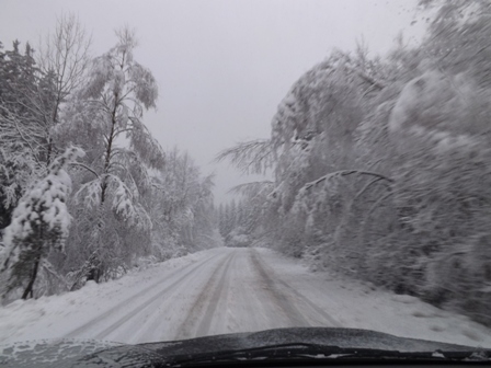 Foto silnice a pak pár fotek lesních cest, kde se nedalo pomalu ani projít. A venku pořád padá :Pohoda: