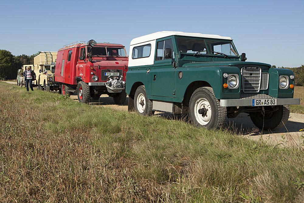 A teď jedna taková normální fotka až na to první auto "elektro trojka" (SRN, dojezd na baterie 200 km, bohužel silně zvětšený přechodový úhel - baterie pod prahy, místo motoru i palivové nádrže)