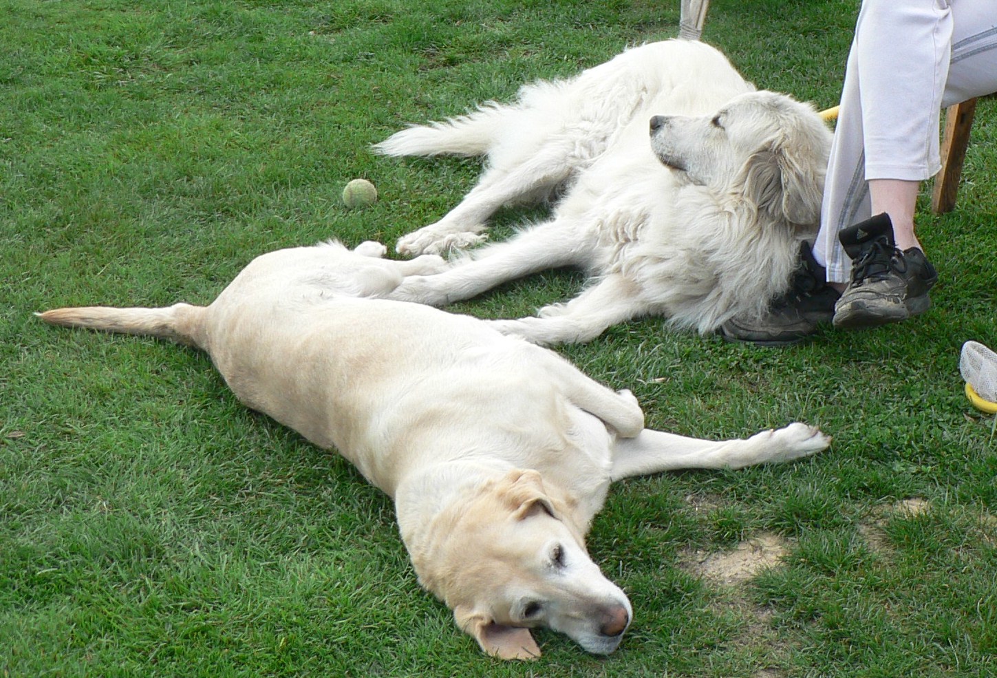 Pyrenejka je Jumejra z Filipova dvra a labradorka je Dina. Ani jednu z nich páníčkové nechtěli, tak jsou u nás a to už doživotně, jsou to mazlové