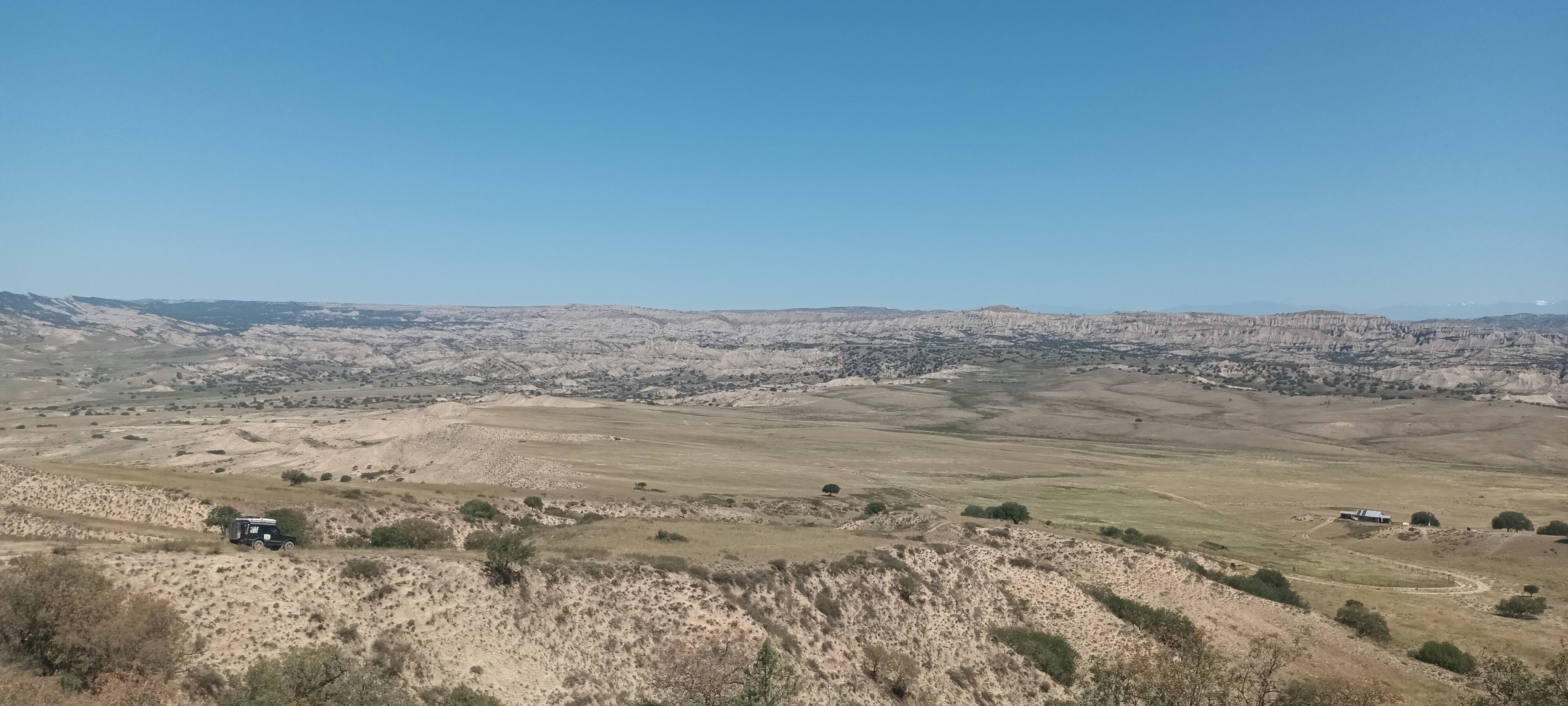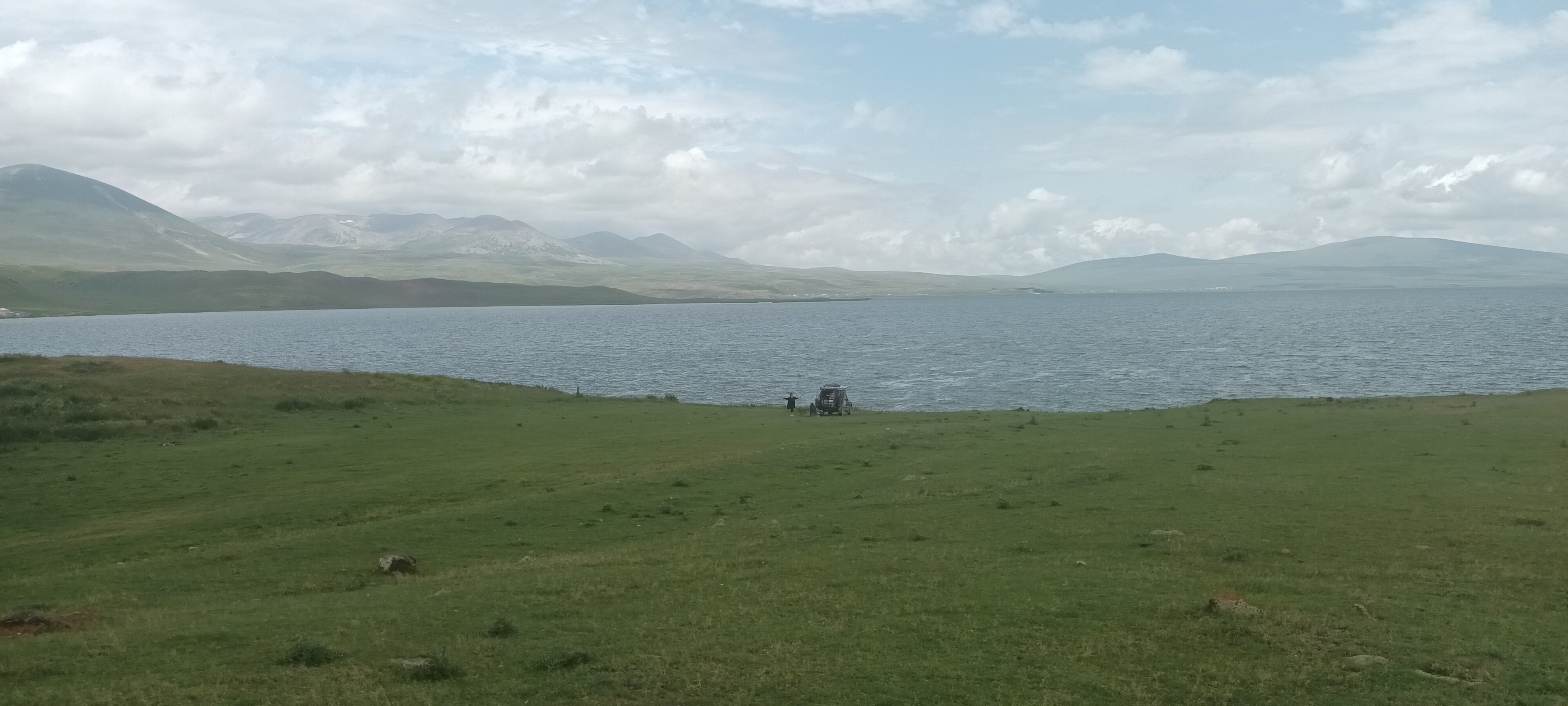 Jezero Paravani. Lepší gotky budou z foťáku. Včera ještě drobná úprava zadního pérování. Netěsnící měch sebou vzal i kompresor, takže vyřazena diagnostikou automatika a jedeme na ruční ovládání. Kompresor to nějak nafoukne, ake trvá to dlouho. Když umře úplně, tak přehodím druhej, co s ním foukám uzávěrky, ale nejradši až doma. Poslední repase kompresoru byla před 8 lety, asi.