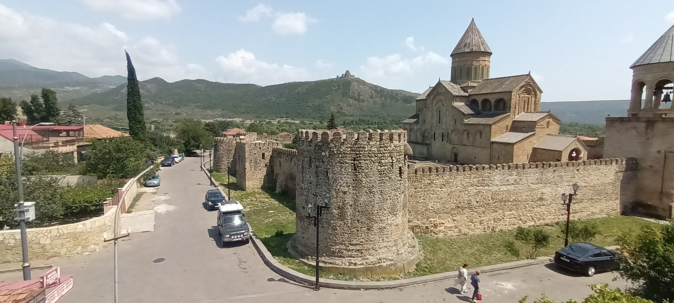 Včera jsme si projeli Baghavachosghele pass - 2968m, GPS ukazovalo o něco víc. To byl skutečnej konec světa. Dnes bereme relax v hotelu ve Msketě. Úplně v historickém centru. V horách chládek, tady je přes 30.