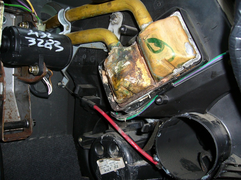 - na radiatori z boku je malinká prasklina z ktorej pod tlakom uniká voda, teče do klímy, smrdí to a rosia sa okná atd......