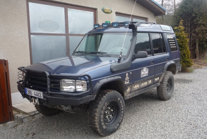 Ex Disco 300 Tdi naviják 5,4t, trocha železa okolo, lemy, zahrádka nějaké světlo navíc a 255/85 R16 BF KM2