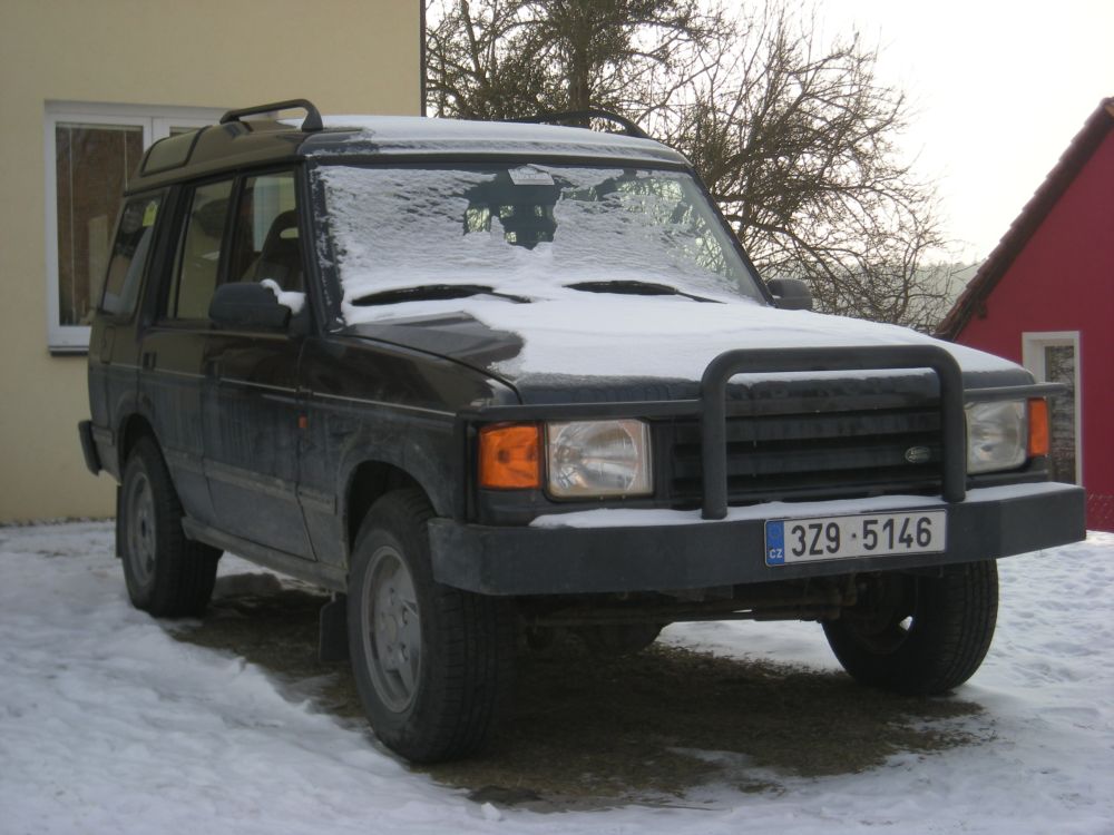 Ahoj, prodám svoji Discovery I. Je to 300Tdi, rok 97, automat, kůže, falešné dřevo a tak. Bez úprav, pouze přední nárazník viz. foto (původní mám taky) a podložky pod kola. Najeto 265.000. Má obuté nové zimní pneu Continental. Sem tam nějaká oděrka na laku, ale nic zásadního. Interier velice pěkný.