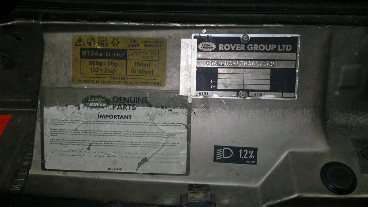 Rok výroby je jednoduchý, protože 300 tdi se originál dělala v RRC jen jeden rok, a to modelový rok 95, čemuž odpovídá i tvé VIN (SALLHAMF8MA652162....) to podtržené písmeno určuje modelový rok (předtím 94 bylo L, 93 K atd.) Několik vozů se vyrobilo s písmenem N, ale těch je opravdu zanedbatelně.