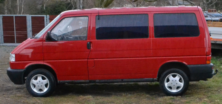 Je to VW T4, r. v. 1997, 1.9 Tdi, 50 kW (jezdím s tím za 6 - 7 litrů nafty), 2 - 9 míst (ve stávající úpravě 7), tažné zařízení, mechanický sytič, střešní okno, dovoz z D, v ČR jsem první majitel, najeto 400 tis., po dovozu repase převodovky, nová spojka, nový lak, komplet dělaná přední náprava - čepy, dorazy, stabilizátory atd., brzdy před rokem, nová baterka, v prosinci jsem dával nový zadní díl výfuku, eko se už neplatí. Najel jsem s ním za ty dva roky 20 tisíc. Je bez zjevné koroze. Má nové zimní pneu (Barum Snovanis) na původních alu a na léto nové letní pneu plus nové alu (vše 205/65/15). Je to transportér, ale přestavěn na multivana (tj. i lůžková úprava). Vše co na autě bylo třeba udělat, jsem udělal.