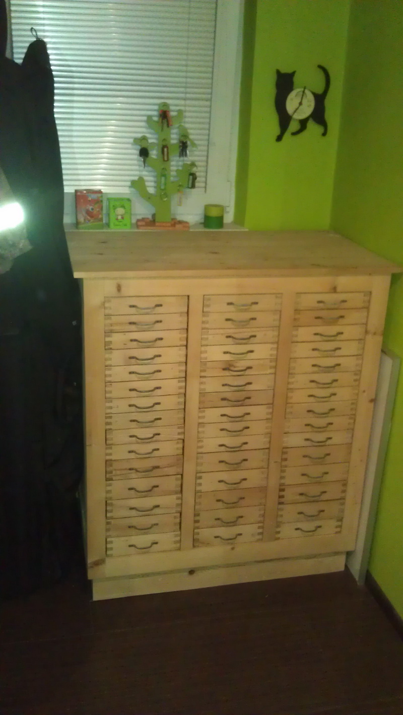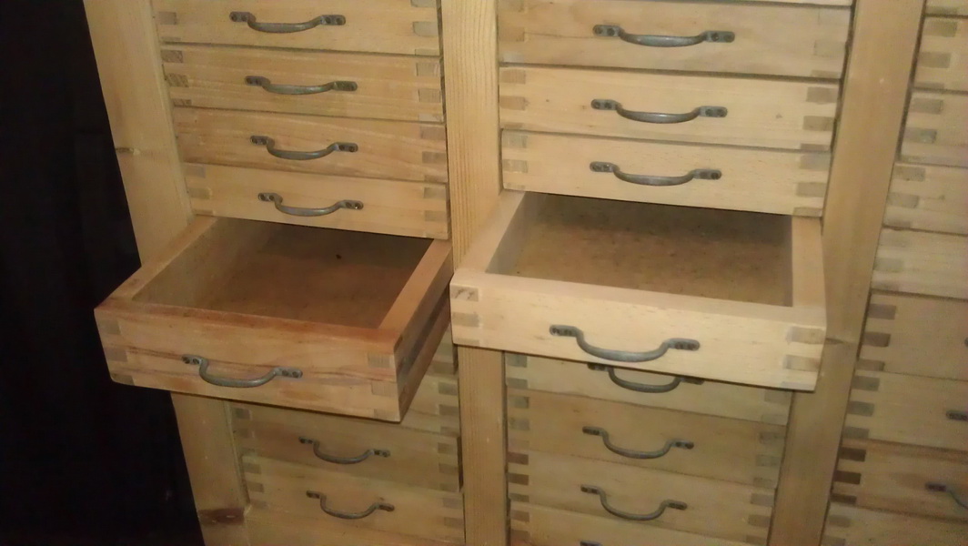 Prodám skříňku - komodu, původně lékárenská nebo spisová, my jsme ji chtěli na archiv map a průvodců, ale chybí nám místo a tak ji prodáváme. Ideální na archivy, sbírky (menší předměty - hodinky, dýmky, nerosty, medaile, mince, brouci..), pro fajnšmekry i na nářadí třeba k veteránům. Perfektní stav, vyrobena ve 20.letech, celomasivní, bez povrchové úpravy - prošla louhováním, takže je úplně čistá. Vnější rozměry 94 x 54 x 108 cm (š x h x v), obsahuje 30x menší šuplík (vnitřní rozměr 19 x 43 x 4,5 cm) a 15x větší šuplík (vnitřní rozměr 19 x 43 x 6 cm). Původní cena v antiku 15.000,- Kč, chtěl bych za ní 10.000,-.