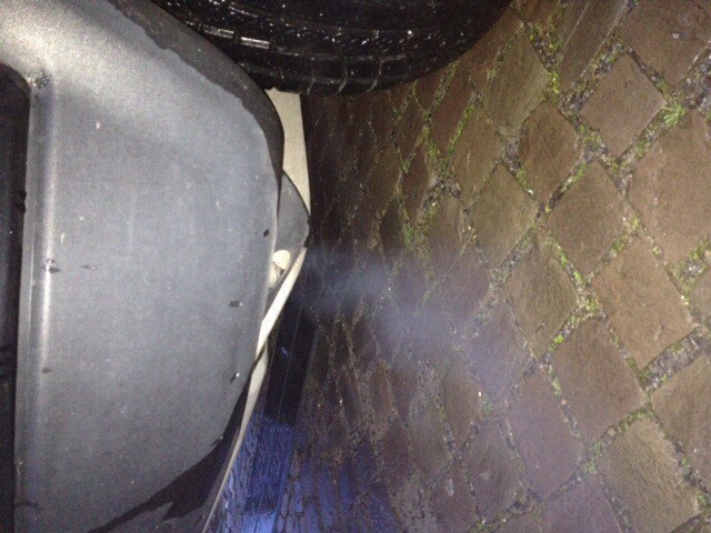 Jak je vidět na obrázku, po 400 km jízdě po zastavení kouří a až lítají jiskřičky z přídavného topení z pod motoru. Je to normální nebo se mám něčeho obávat? Bohužel v Berlíně...