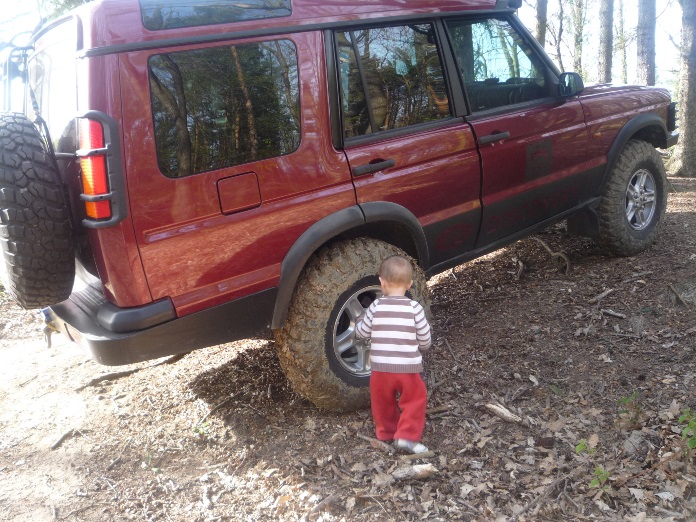 Zubatá kola = tedy MT protektory 235/85/R16 na originál LR Al discích a 30mm podložky mi na D2 v plném rejdu lehce šoupou o konec plastového prahu. AT ani zimáky ve stejném rozměru ne, MT bez podložek jsou taky OK. Zvednuté je to o cca 5cm. Ty MT protektory jsou o něco větší než normální nová kola.