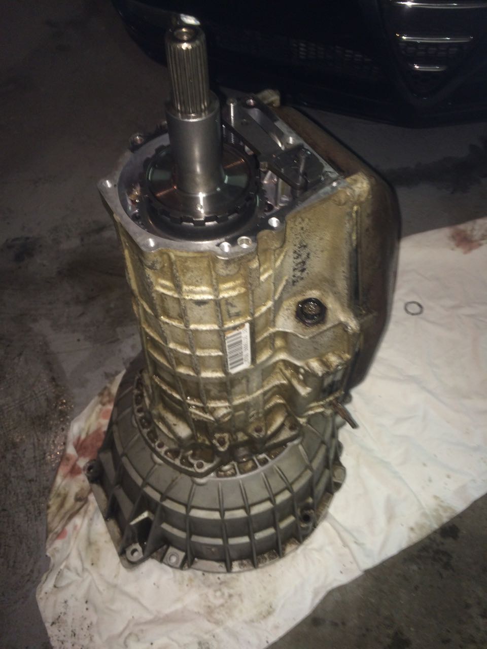 Rozebraná není má jen na foto sundanou fremu/přírubu k tozvodovce, ptotože nová převodovka, kterou jsem dával do auta měla ulomenej jeden šroub, resp díru na šroub.( ulomenej kus mam jde nechat privarit)
