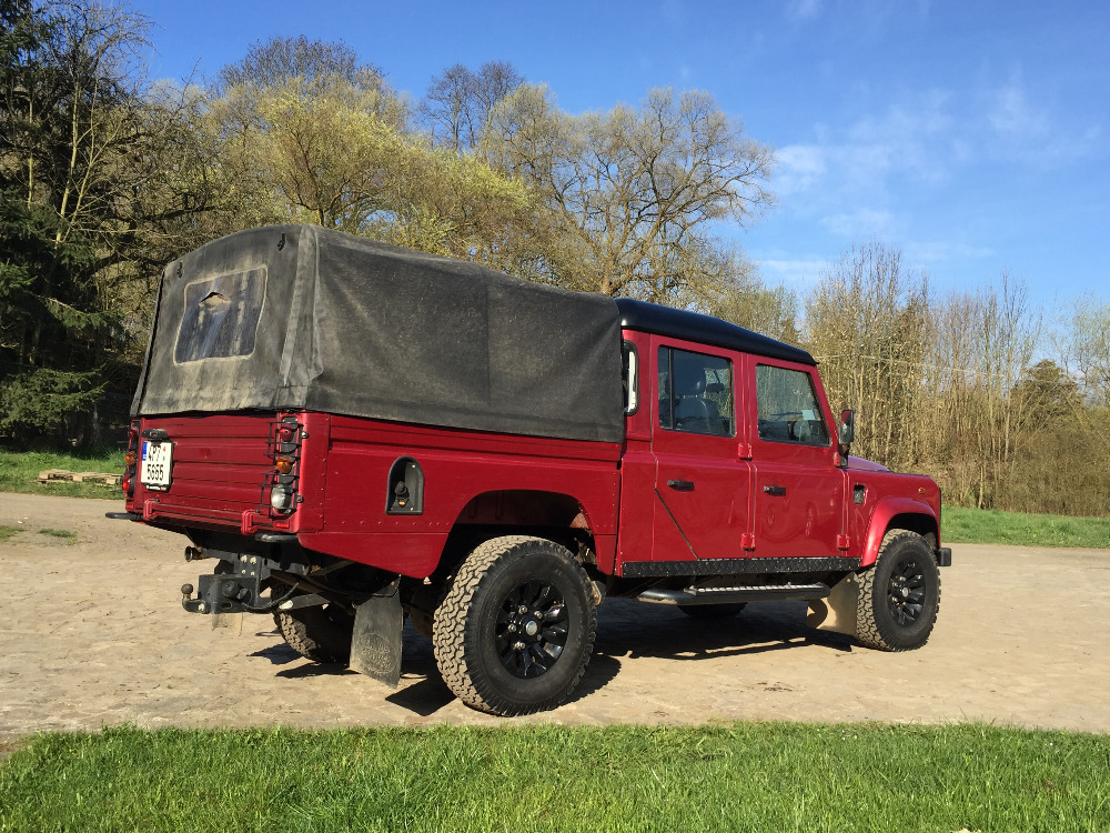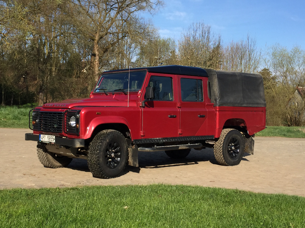 Land Rover Defender 130, provoz 10/2013, motor 2,2 bez DPF, 90kW/122 k, najeto 46.000 km, tažné, CB, vzduch, obě uzávěrky, blatníkové nášlapy, první majitel, koupeno v ČR, používáno na farmě (žádné expedice). Kupován nový u Dajbycha, vše vybaveno tamtéž.