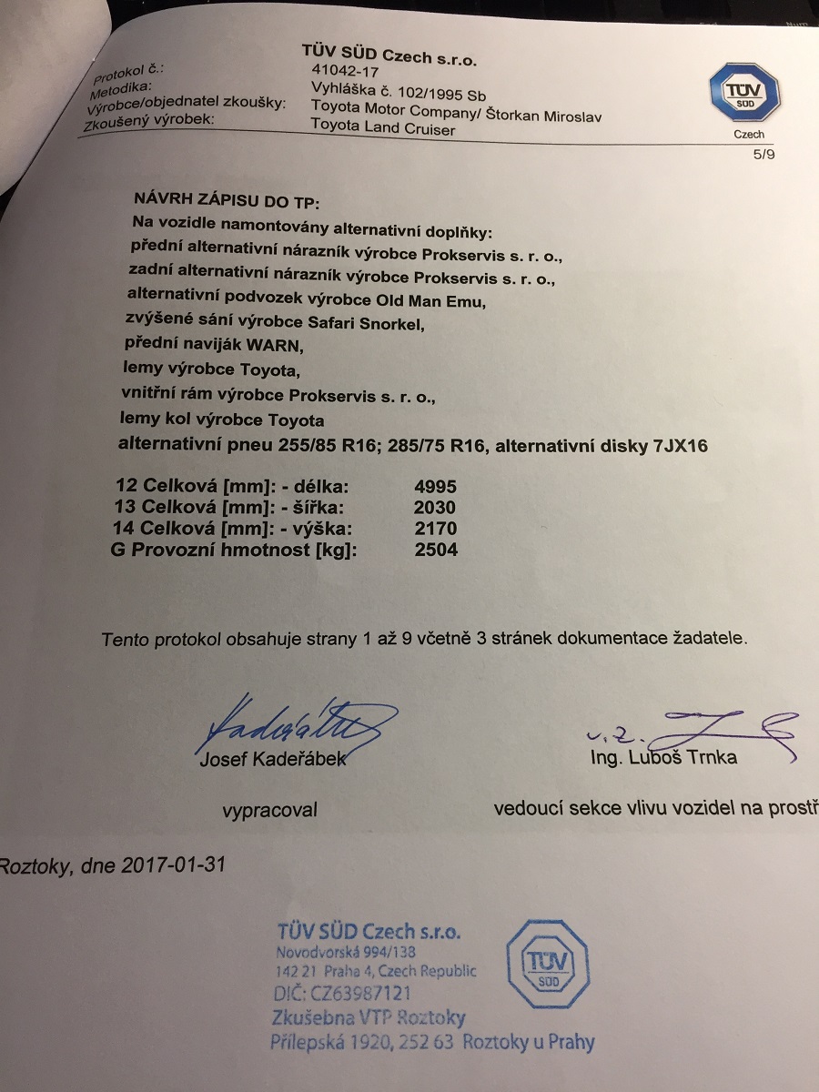 Včera jsem si vyzvednu protokol, kterým se legalizují všechny úpravy na Koyotovi. V pondělí se to bude zapisovat do TP.