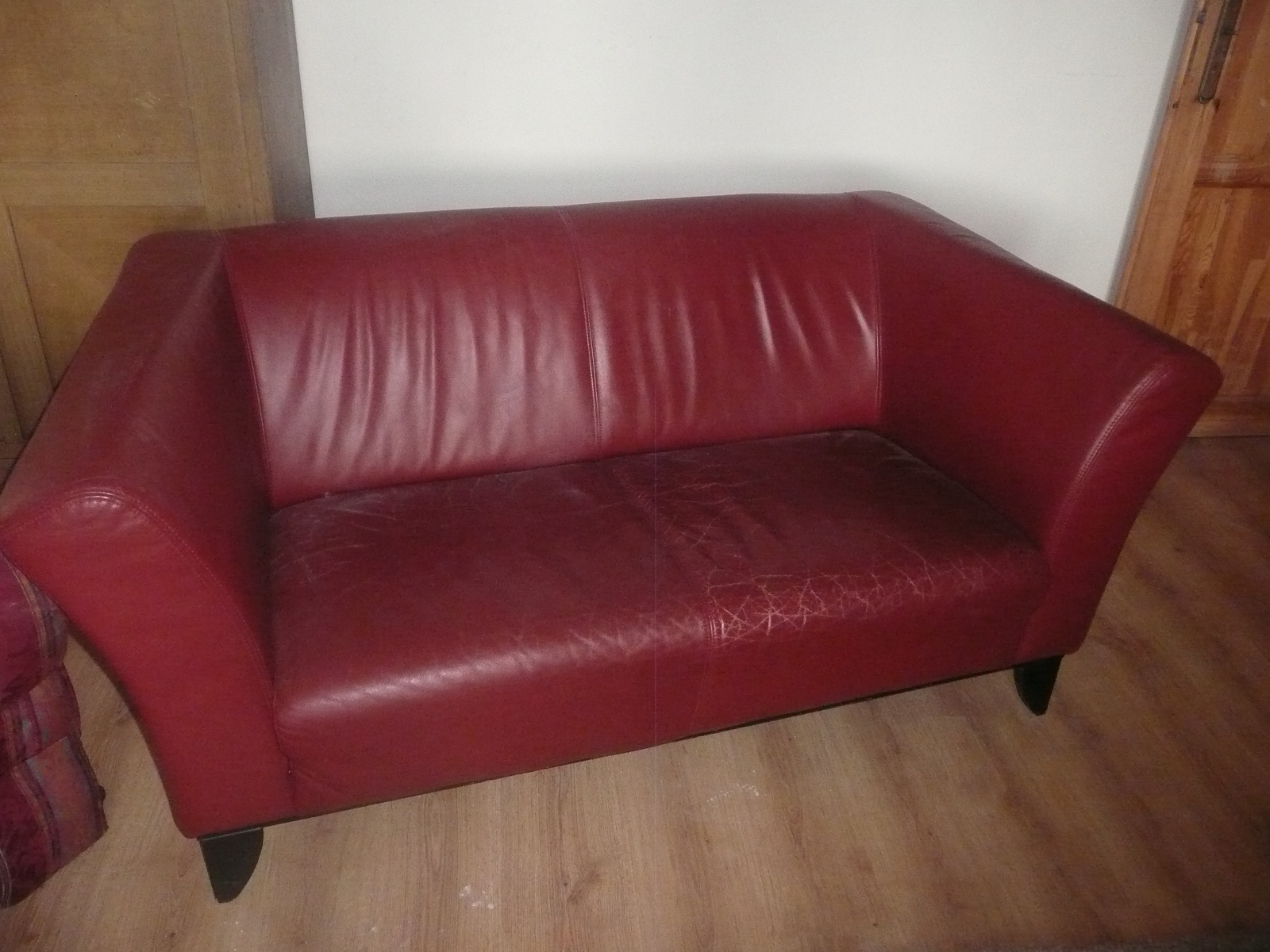 Pěkná sedací souprava , kůže, vínová barva, neroztrhaná, Ikea výrobek.