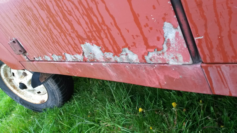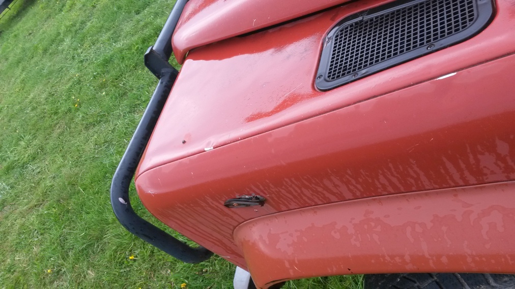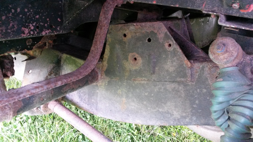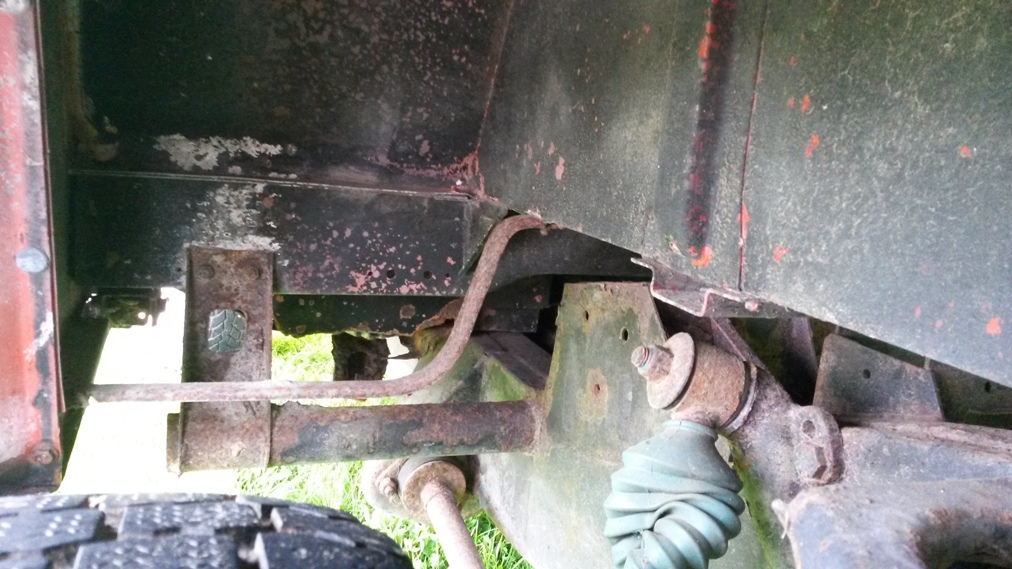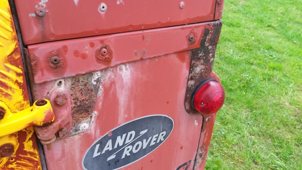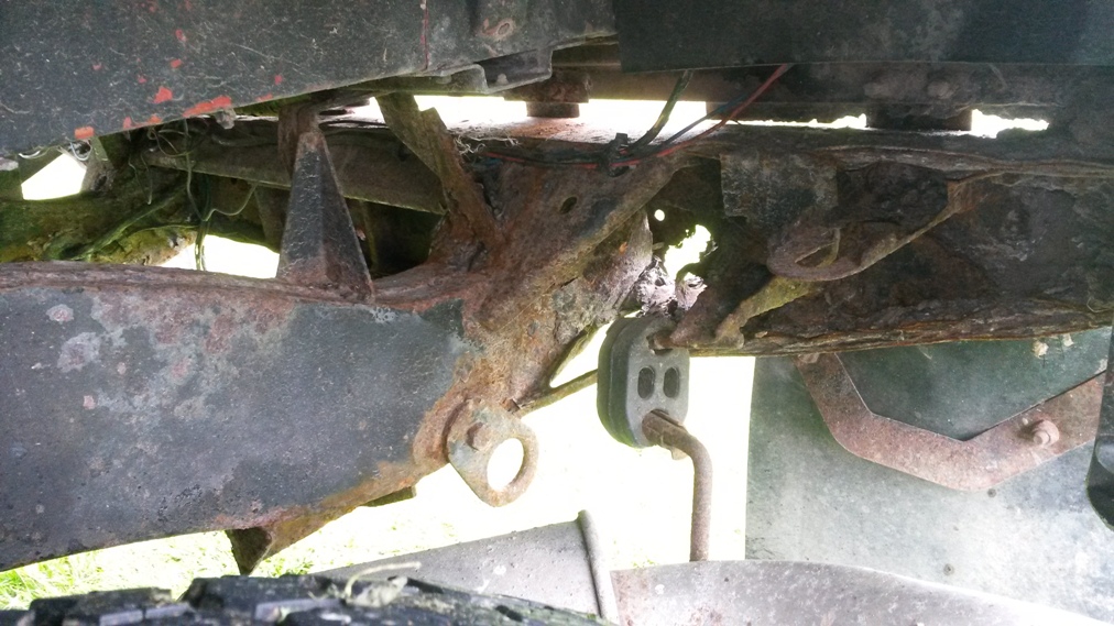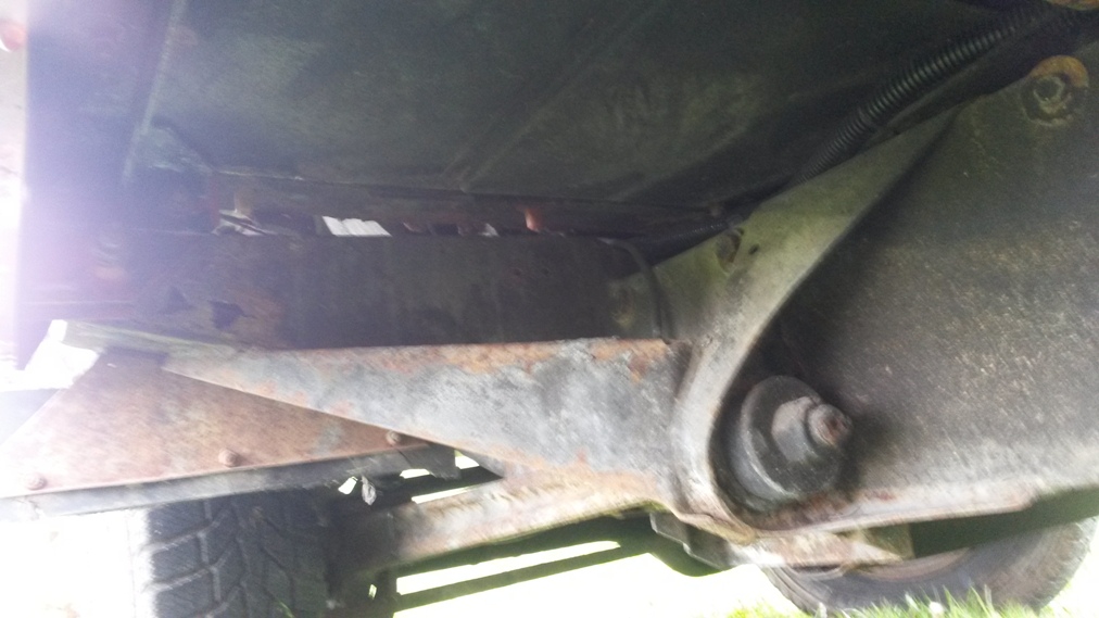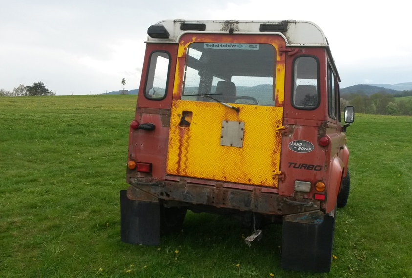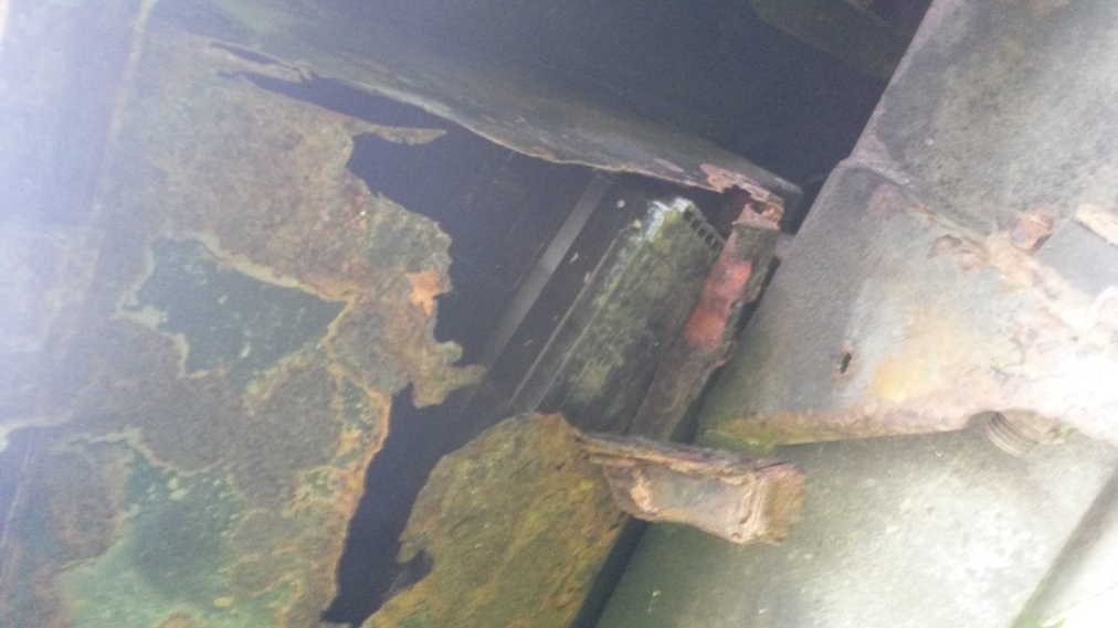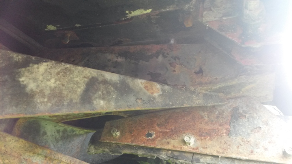 Stav chassis je celkem ok k zadni napravě pak to jde od desiti k pěti, zadni crossmember je na vyměnu ale silněji zasazena jsou i ta mista pred nim - cely ten oblouk od pružin dozadu, ostatně foto je ve vlakně o mých autech. Nejhorší místo kastle je díra pod sedadlem řidiče, ocasní dveře, jsou zřejmě neoriginální puvodne zluta barva, ale je na nich nálepka 40 let landroveru (možná z roku 88). Střecha, boční dveře,bulkhead, blatníky, kapota - to vše s mizerným lakem, ale bez vážnějších problémů - vše vyjmenované lepší než mám na legendě.