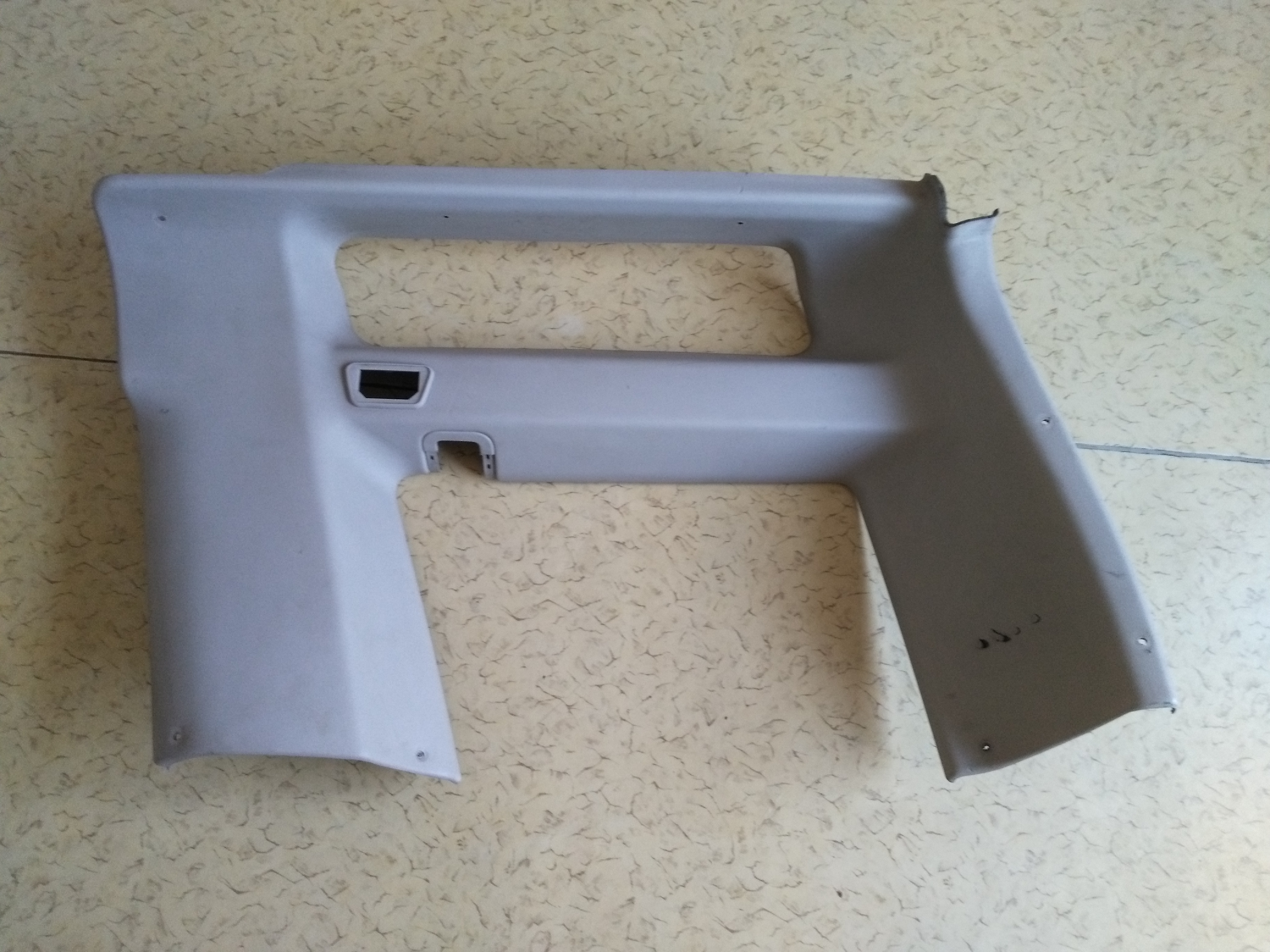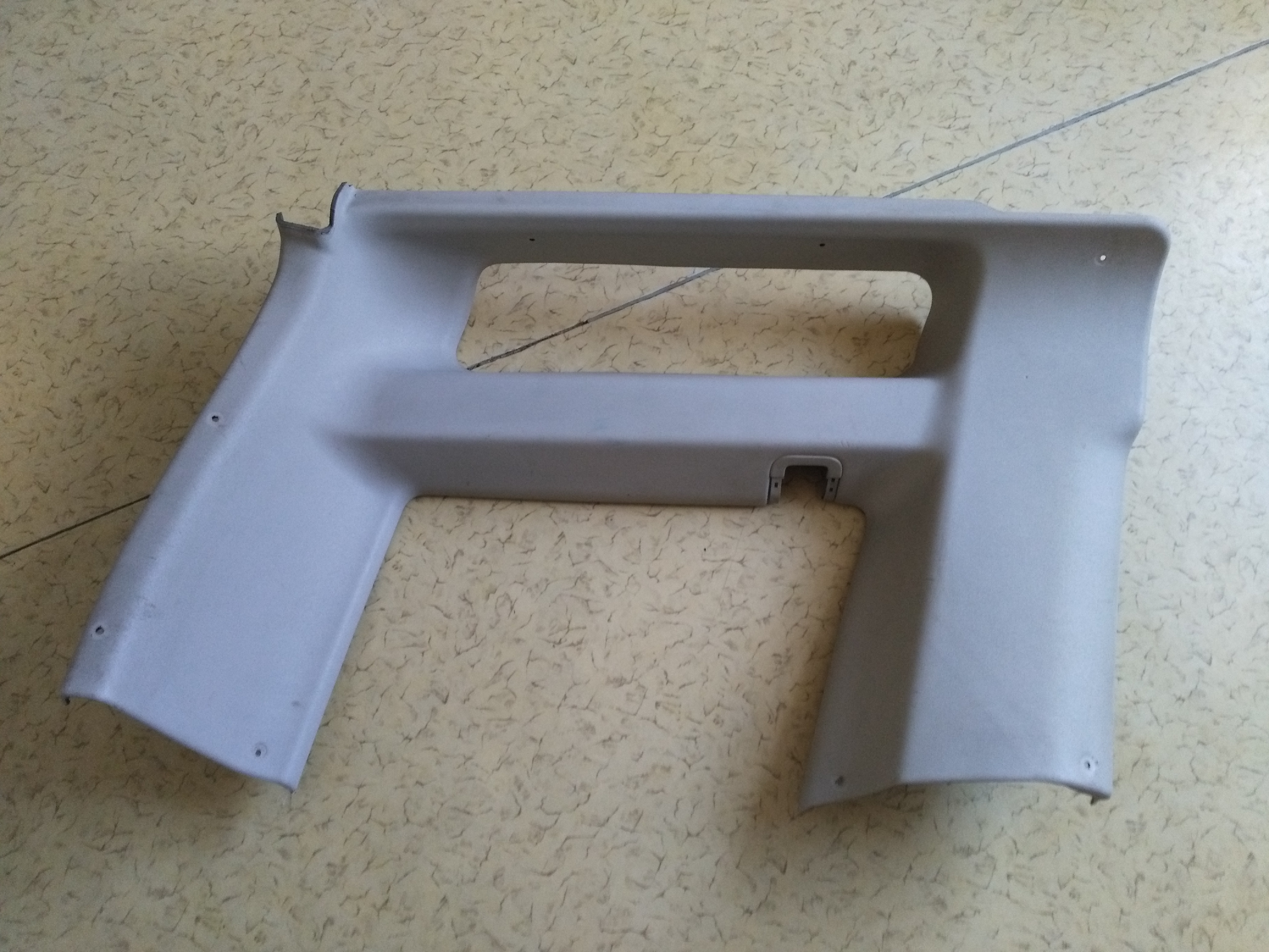 Foto plastů. Ten pravý je drbnutý nad spodním zadním krajem. Podle mě by to s jistou dávkou šikovnosti šlo zpět nalepit, žádný materiál nechybí.