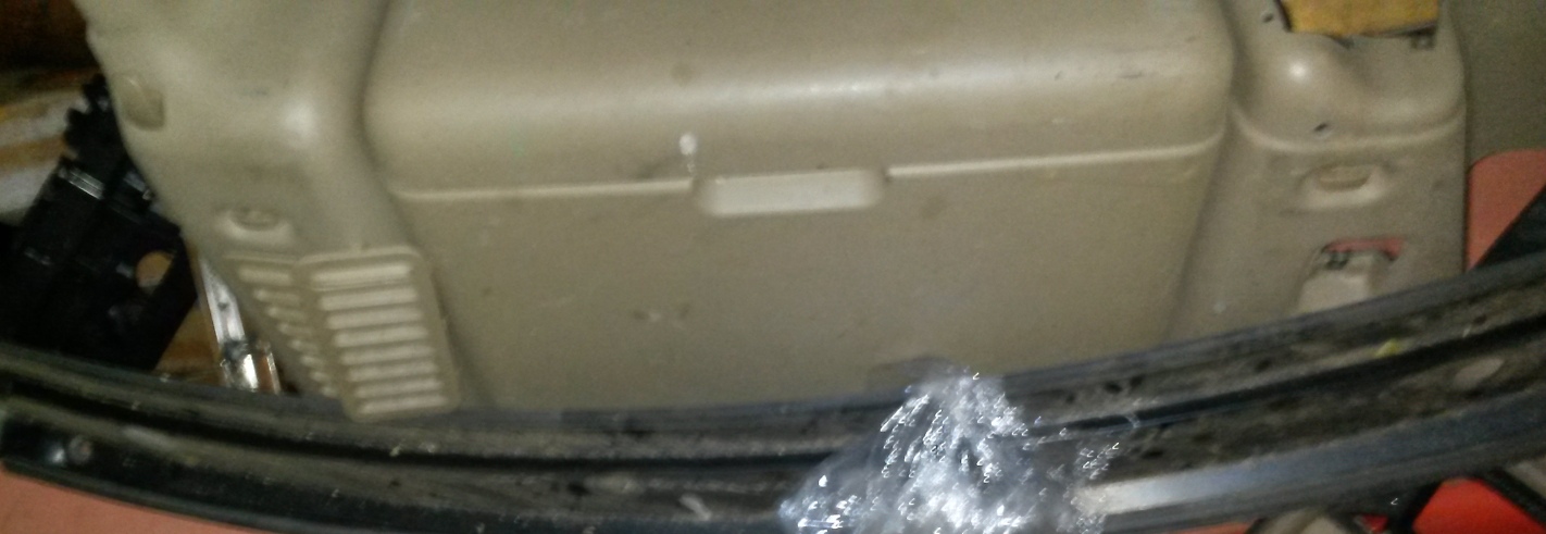 Lišta na stropě. Další kuriozní předmět jsou hlavové opěrky ke kterým náleží i lišta, do kterých jsou chycené. V minulé přestavbě jsem je vyndal i s lištou a nahradil lištou pro pětimístnou verzi, ve druhé své přestavbě zvažuji, že je tam nechám (jako vázací bod pro materiál, nebo prostě jako zarážku proti něčemu, co se z kufru už definitivně valí ven – třeba hromada tašek a spacáků apod.) Až neuvěřitelné mi přišlo, že hlavové opěrky samotné jsou šroubované skrz kastli tak, že po jejich odmontování vznikne regulérní díra nad těsněním pátých dveří – prostě land rover.