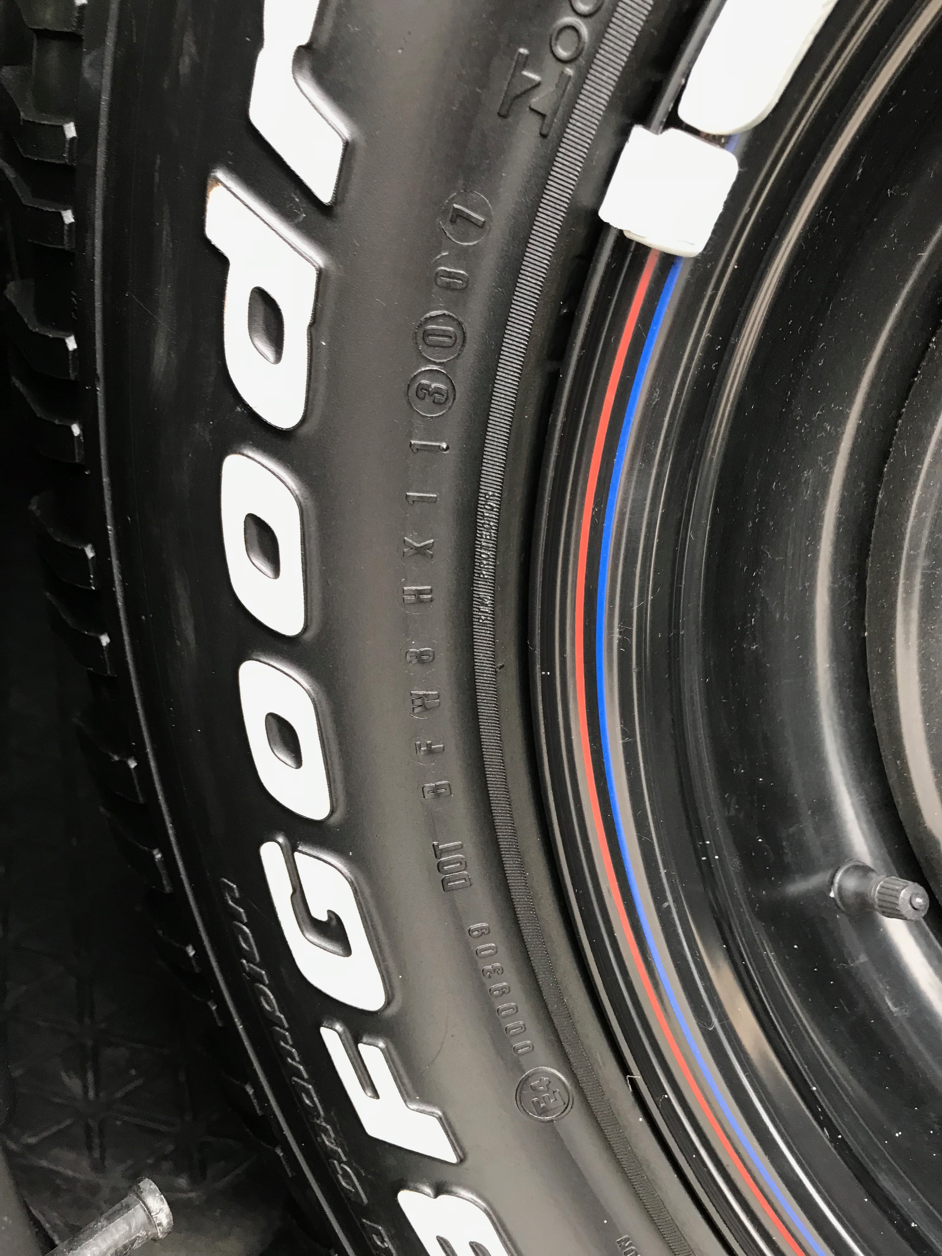 Ahoj Predám pneu BF AT 265 75 R16 samotné, alebo na diskoch 5x 165,1 R16 ET -25....resp vymením za MT 255 85 R16 alebo niečo v rozmere 35 10,5 R16....maju priemerne okoo 8 mm.