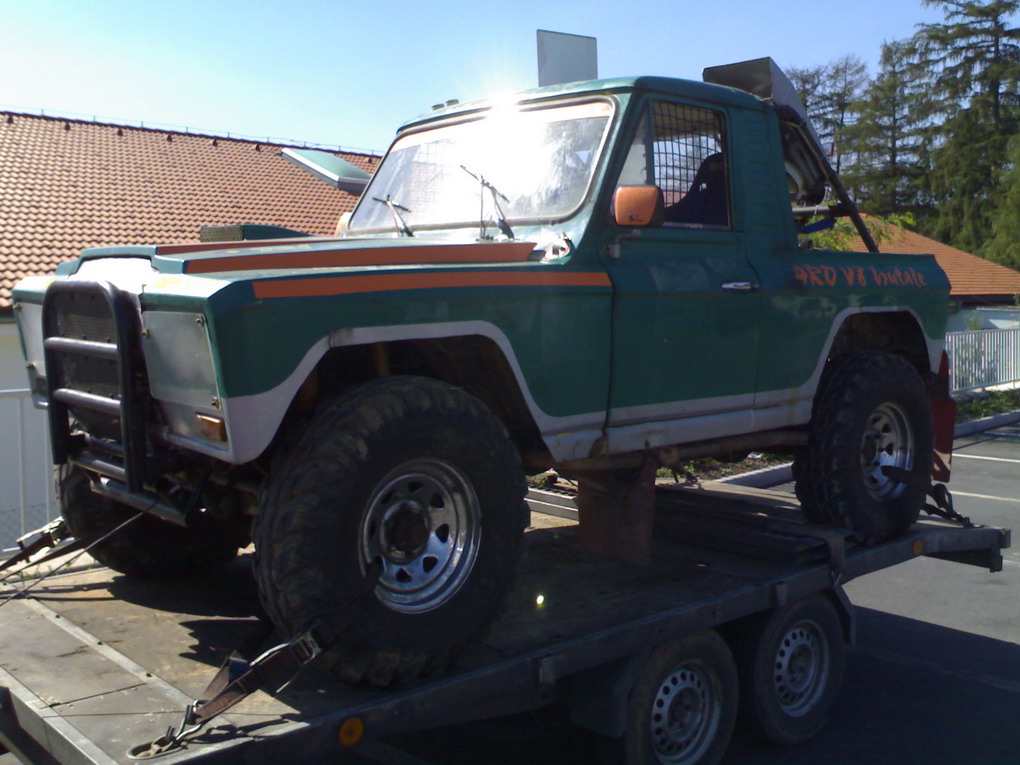 Aro V8 Brutale rám převodovka rozvodovka RRC motor 7,2 bigblock závodní auto postaveno v ARO France na dakar. Všechny homologace své doby. Nádrž na 300l benzínu. Přestavěno tady v Čechách ve Val. Mezu Tondou Horákem na lepší nápravy a víc tlumičů. Jelo to pekelně než jsem zabil ten motor.