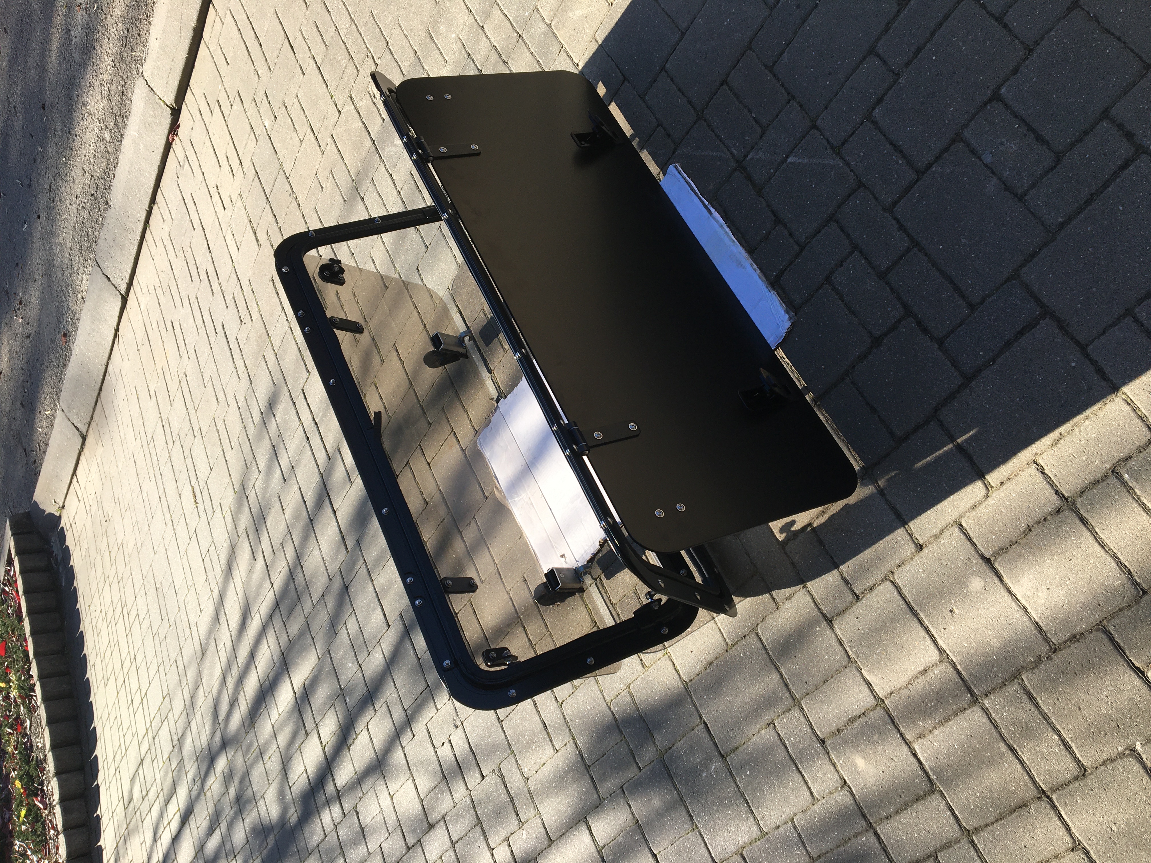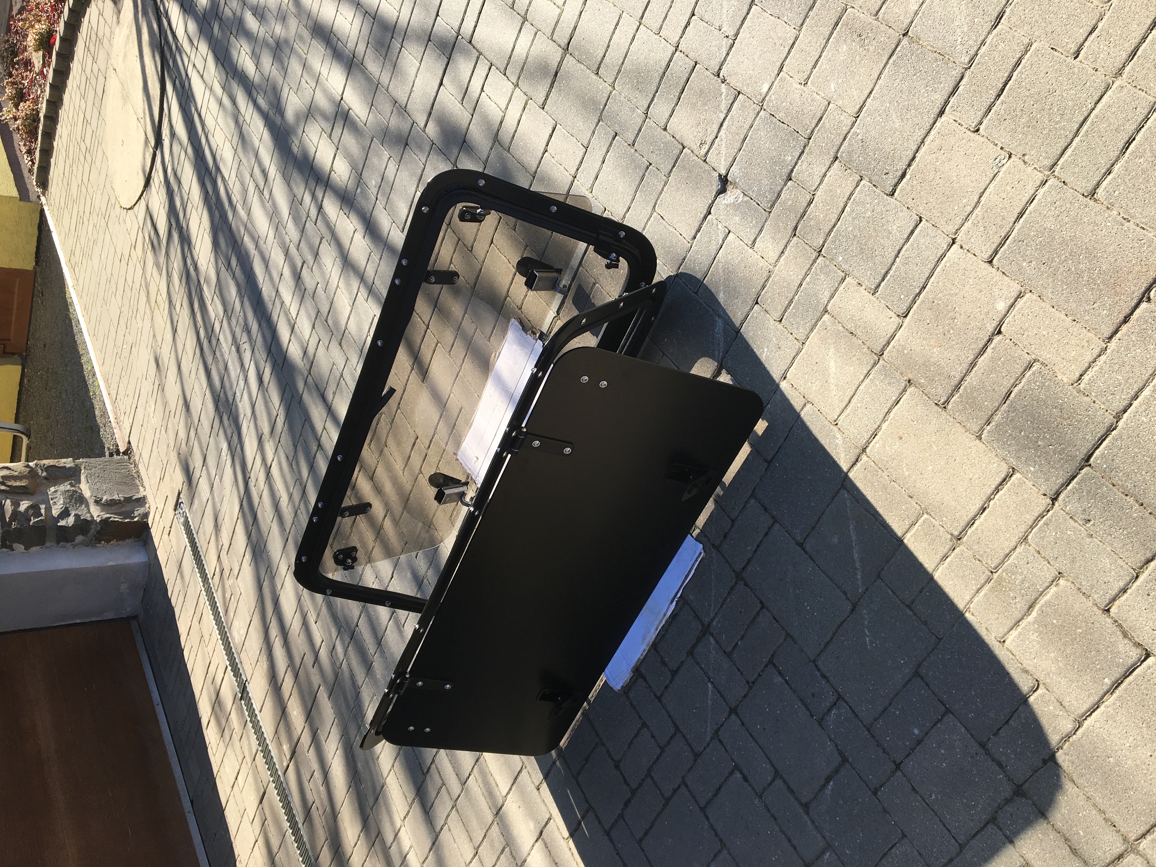Nabízím boční okna vlastní výroby s výklopným mechanismem a možností zamčení černý komaxit mat.Varianta buď kalené sklo tónované, průhledné nebo hliníkový plech s možností hliníkoveho chastlíku viz foto.cena 8 tis. chastlík +800,- okna budu mít teď 2 na prodej pokud by byl zájem tak termín dalších cca 1,5 měsíce závazná objednávka se zálohou.tel 737757524 nebo sz.