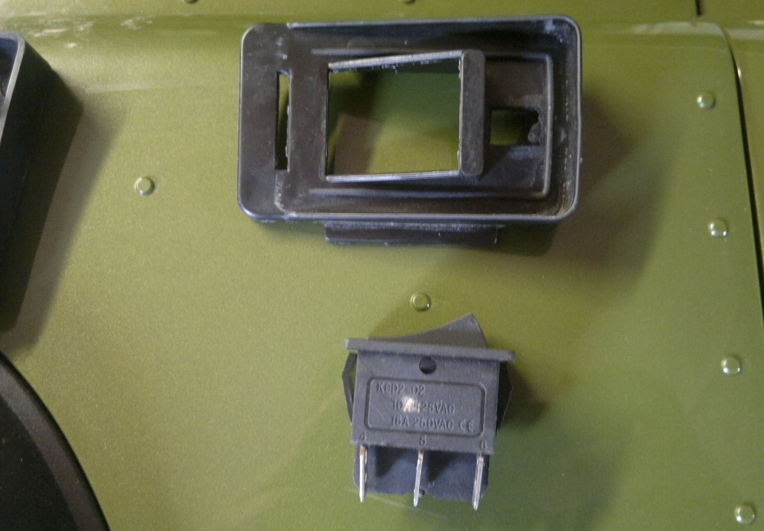 Naštěstí to není žádná specialita, ale skrývá se tam jen prachobyčejný síťový spínač, resp. samovratné tlačítko typu OFF-(ON). Přizvedává celý pedálek, není tam ani pomocná pružinka.