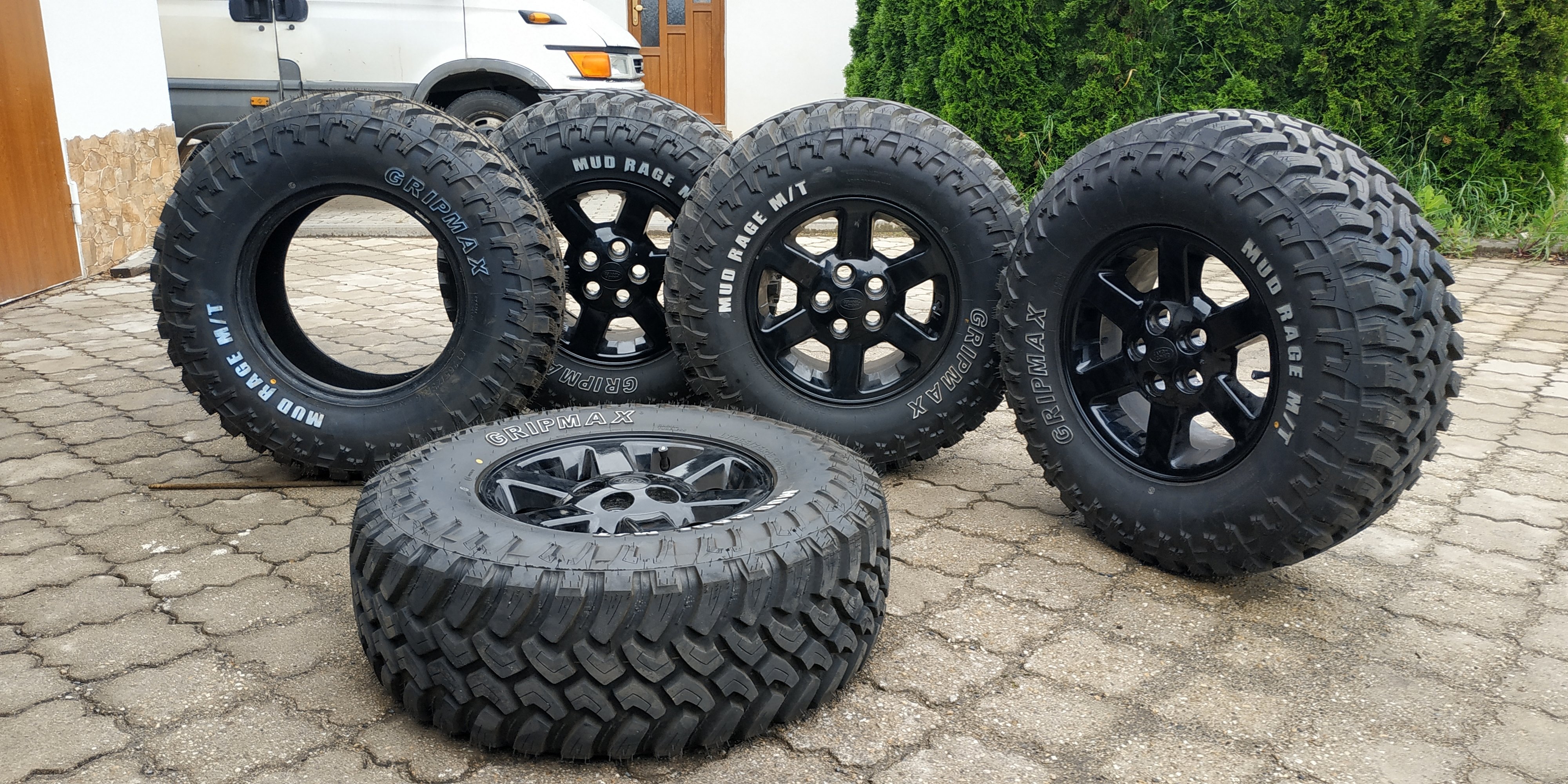 Prodám 5 kusů nových MT pneu Gripmax Mud Rage v rozměru 265/75 R16 LT. Jsou celkem tiché na silnici v rámci kategorie MT. Pneu jsou nové (najeto 00 nic), sundané z auta po prodeji. Naimpregnováno a připraveno k uskladnění. Cena 2800,-Kč za kus, tzn. 14000,-Kč za všechny. K vyzvednutí v Brně, nebo po dohodě možné zaslat PPL.