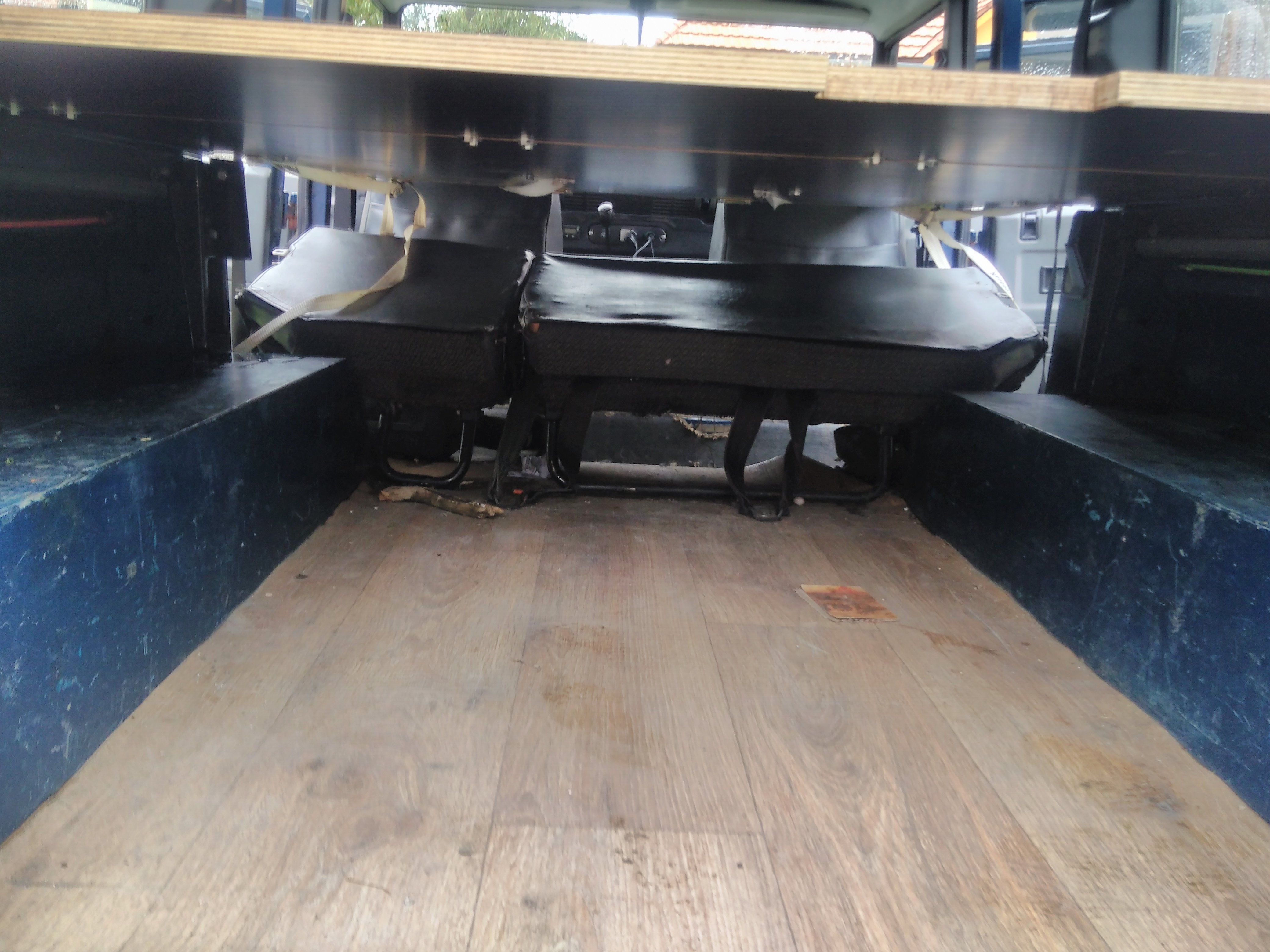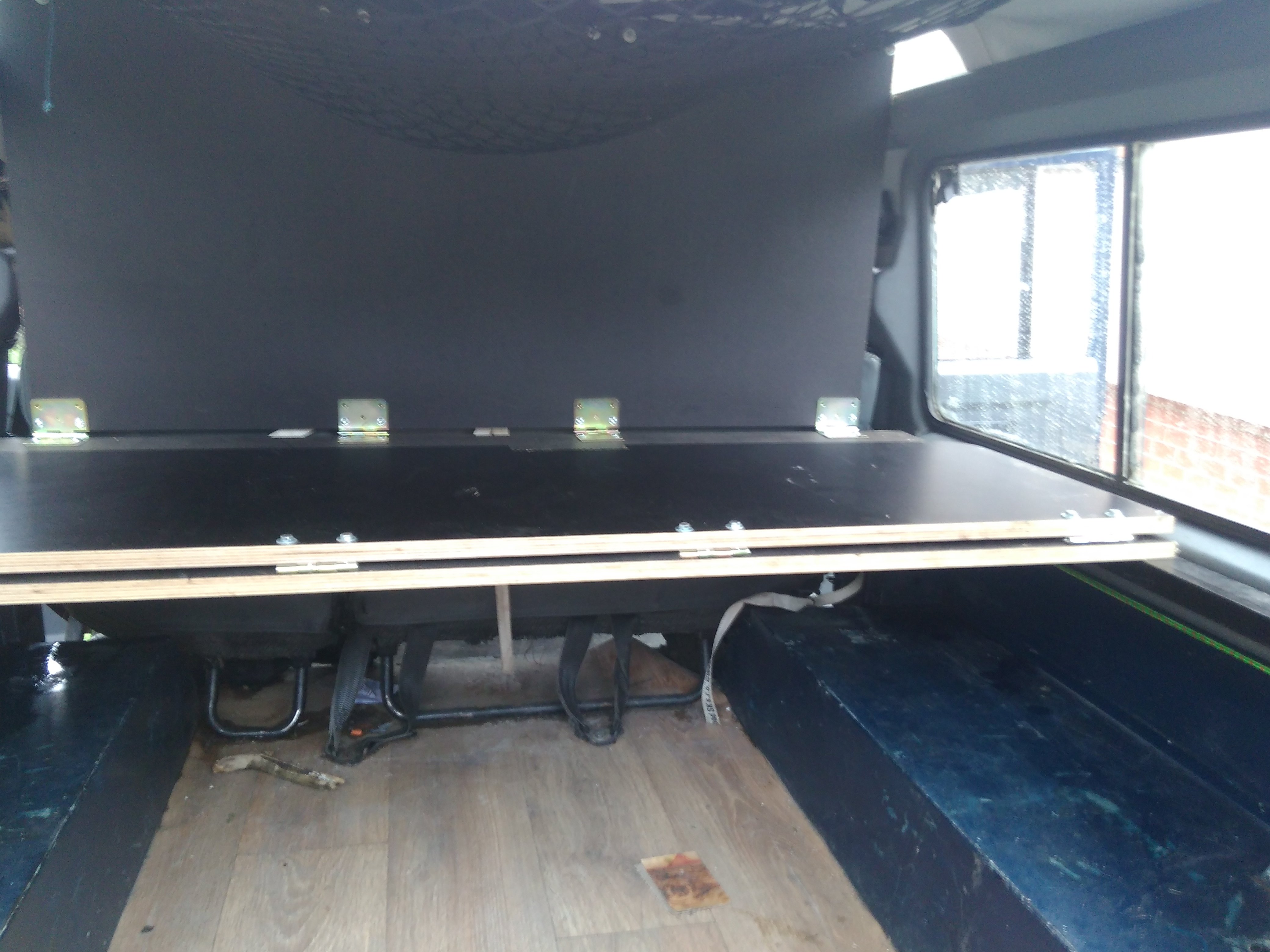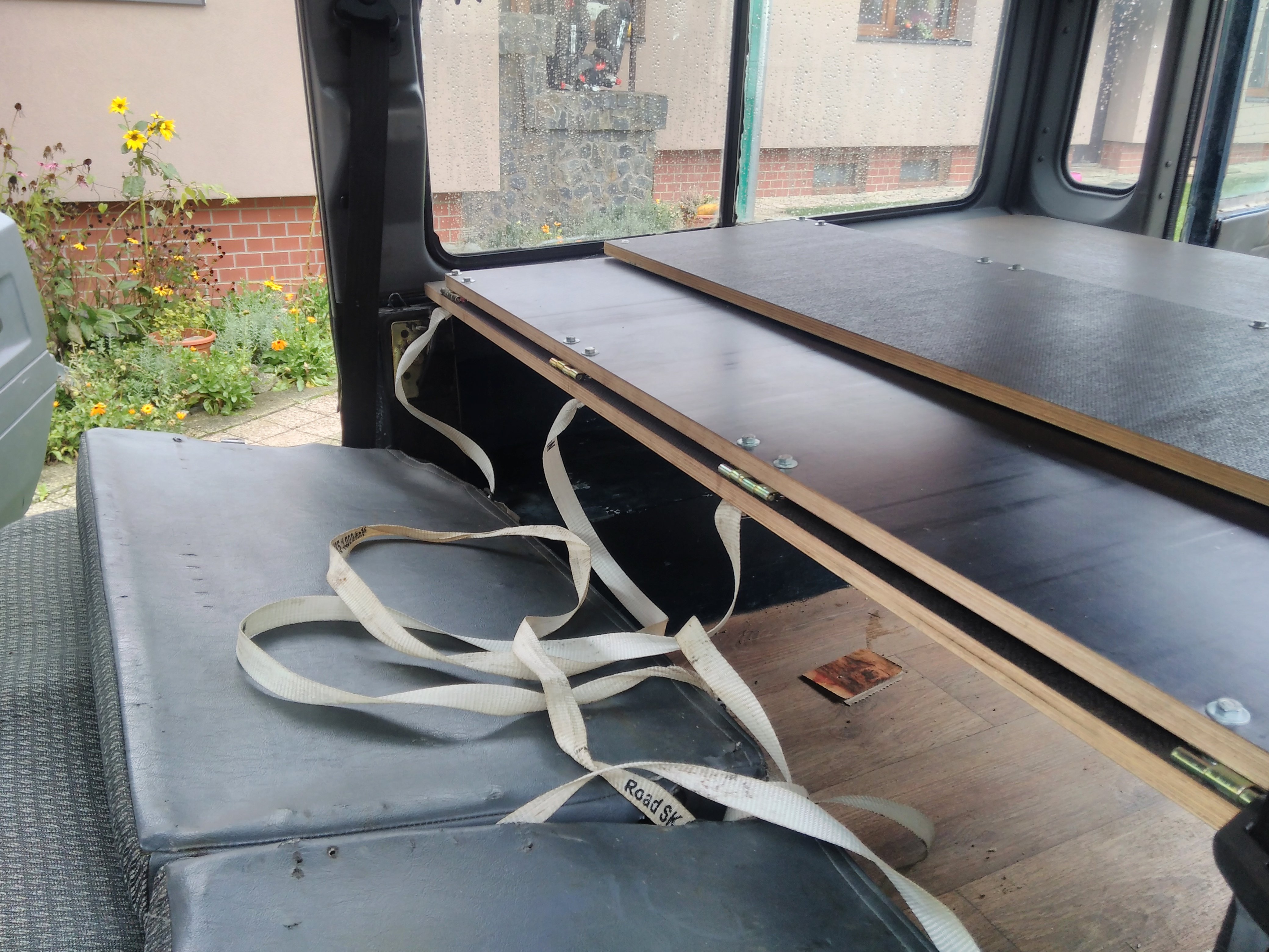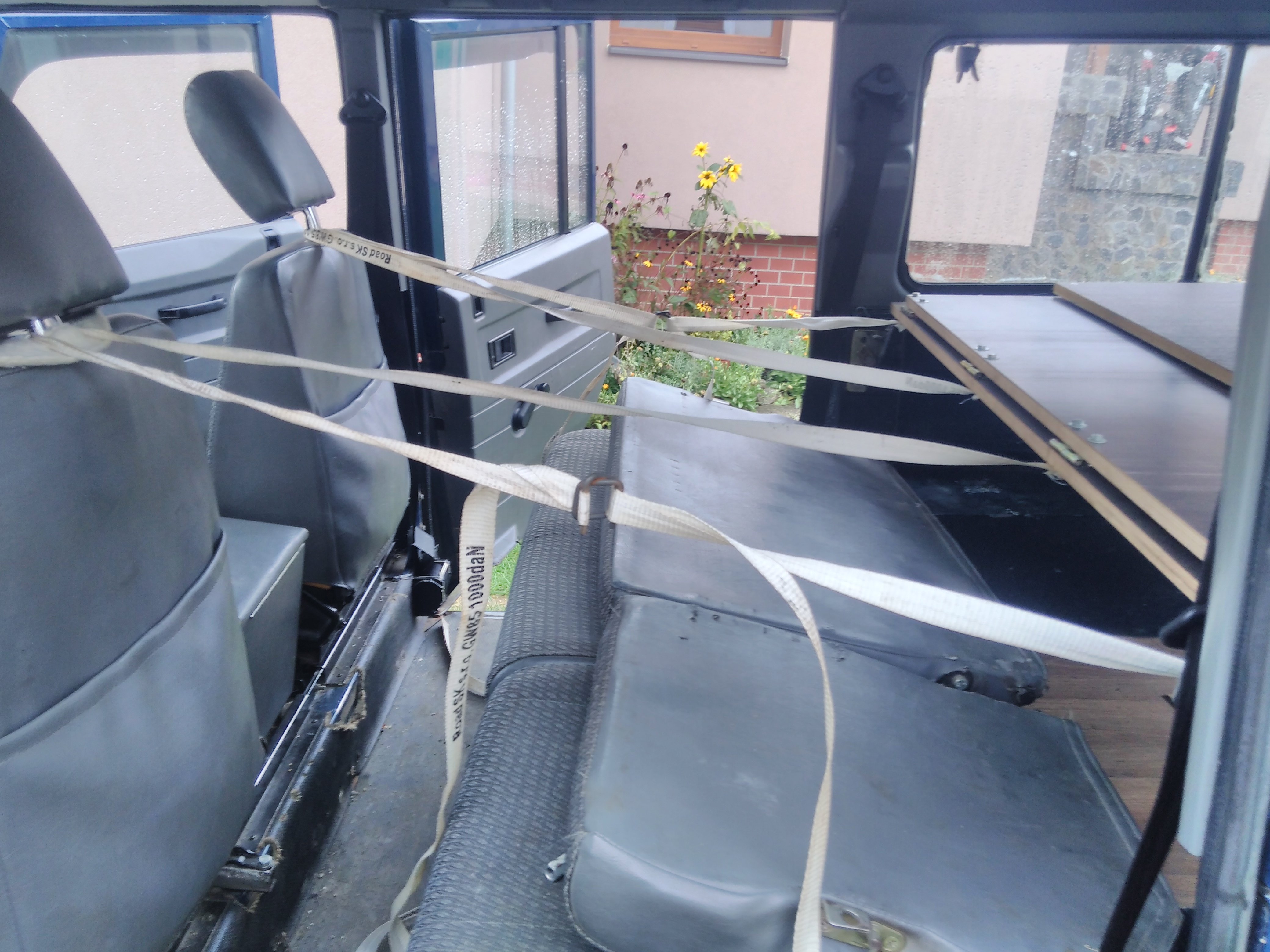 Nazdar tak ponukam spane do defendra 110 300tdi sw. Je upevnene na konzolach ktore su priskrutkovane na bokoch takze nezavadzaju ziadne nozicky. V zakladnej polohe je to plato na velu plochu kufra. Polovica plata sa da preklapat. Dalsia poloha je cele plato s oddelovacou prepazkou medzi sedadalami a kufrom super vec ked potrebujem nalozit az po strop. Samozrejme je mozne mat polplato s oddelovacou prepazkou. Treba este doriesit uchytenie v polohe prepazky. Ja som to mal uchytene v strope tam mam miesto plastovych culpikov zavitovu vlozku a naskrutkovane ocko. Potom je poloha postel pricom podperu poslednej casti robia popruhy pretoze som opat nechcel nozicky ktore by mi zavazdali. Odskusane to je pre dve dospele osoby a dve deti. Tetaz mame karavan a psa takze spime v karavane a kvoli klietke pre psa tam nemontujem postel. Material je vodeodolna preglejka 18mm take netreba ziadne vystuhy sama je dost pevna. Chcem za to 150€ je v tom iba matros za 120€ a nejake phm a cosi na kavu.