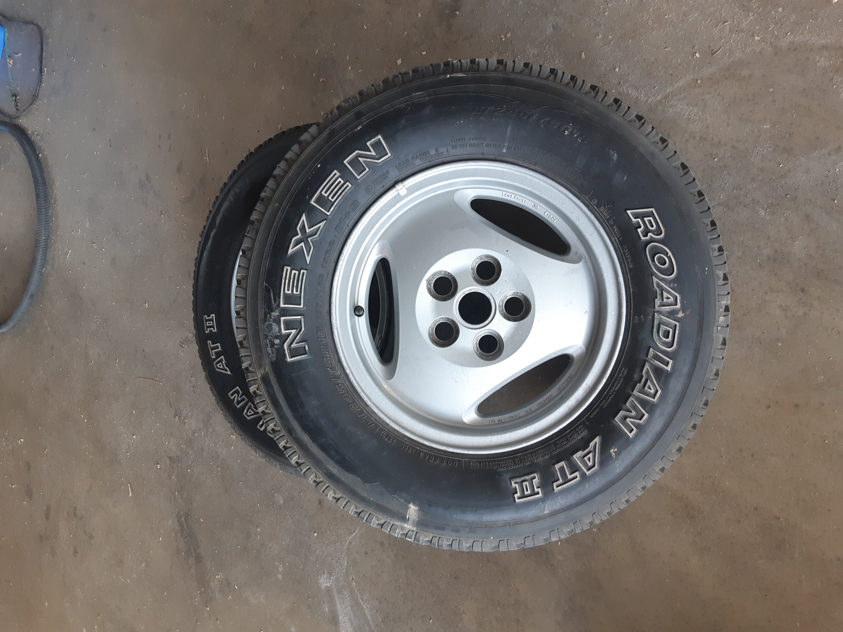 Prodám 4 disky na D2/RR, jsou na nich pláště 2xAT NEXEN 245/75/16 a 2x Falken AT - dvě ucházeji,. Celková cena 4 000,- samorné disky 2 000,-