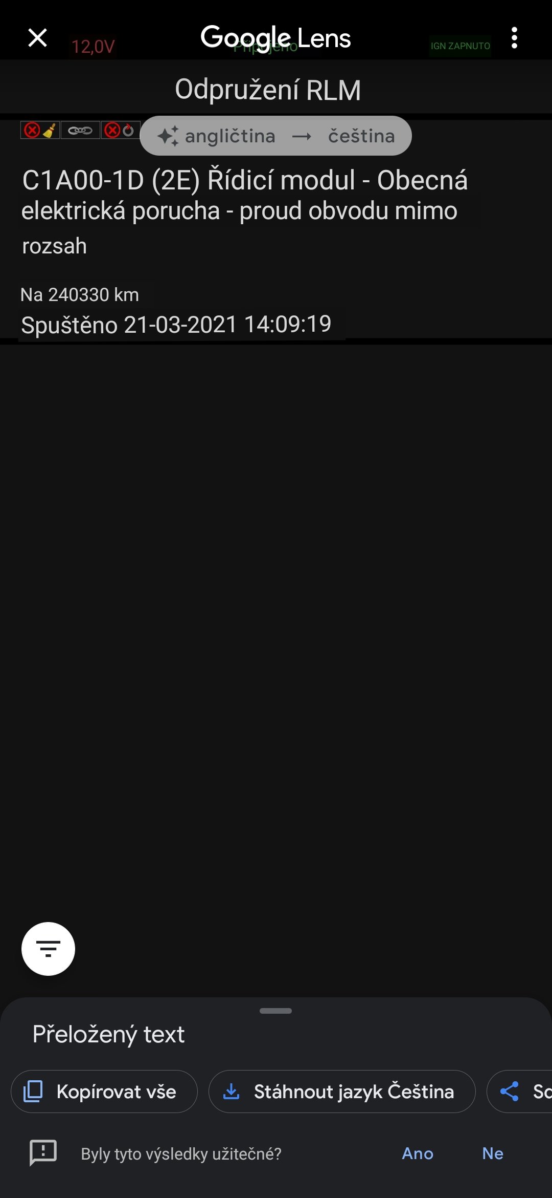 Ahoj mám problém konečně mi dneska demontoval chlápek LPG v lr l322 4.2sc a předávál mi to že si to zvedl aby demotoval hadice od nádrže a podvozek už nesjel dolů píše to susepsion fallout po odpojení baterie mi to zůstává furt i pri jízdě chci změnit nastavení výšky začne blikat jako že sjíždí a zhasne mi to na středovém panelu celé po připojení iidtool mi to vypíše jednu závadu dám screenshot originálu i překladu a jedna zajímavá věc přes test v iidtool mi předek chodí dolů i nahoru a zadek vůbec čidla zapojená na první pohled pod vozem to vypadá ok jedině zkusit plásty sundat teď otázka co vše je možné vadná jednotka?nebo rozdělovač? děkuji za rady