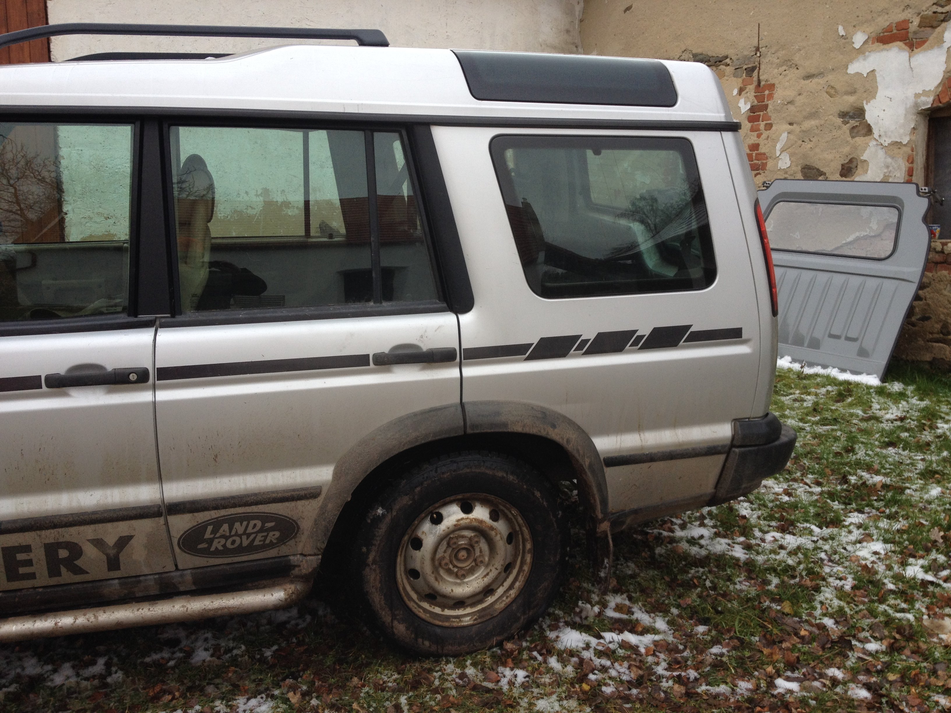 Na celým autě je nejduležitejšá to, že ty černá nápisy a linka na boku jsou ve skutečnosti reflexní, takže když jdu večer s čelovkou pro dřevo do krbu a mihne se kužel světla směrem na louku, tak se tam krásně rozsvítí ta linie a nápis DISCOVERY s logem LR :-)
