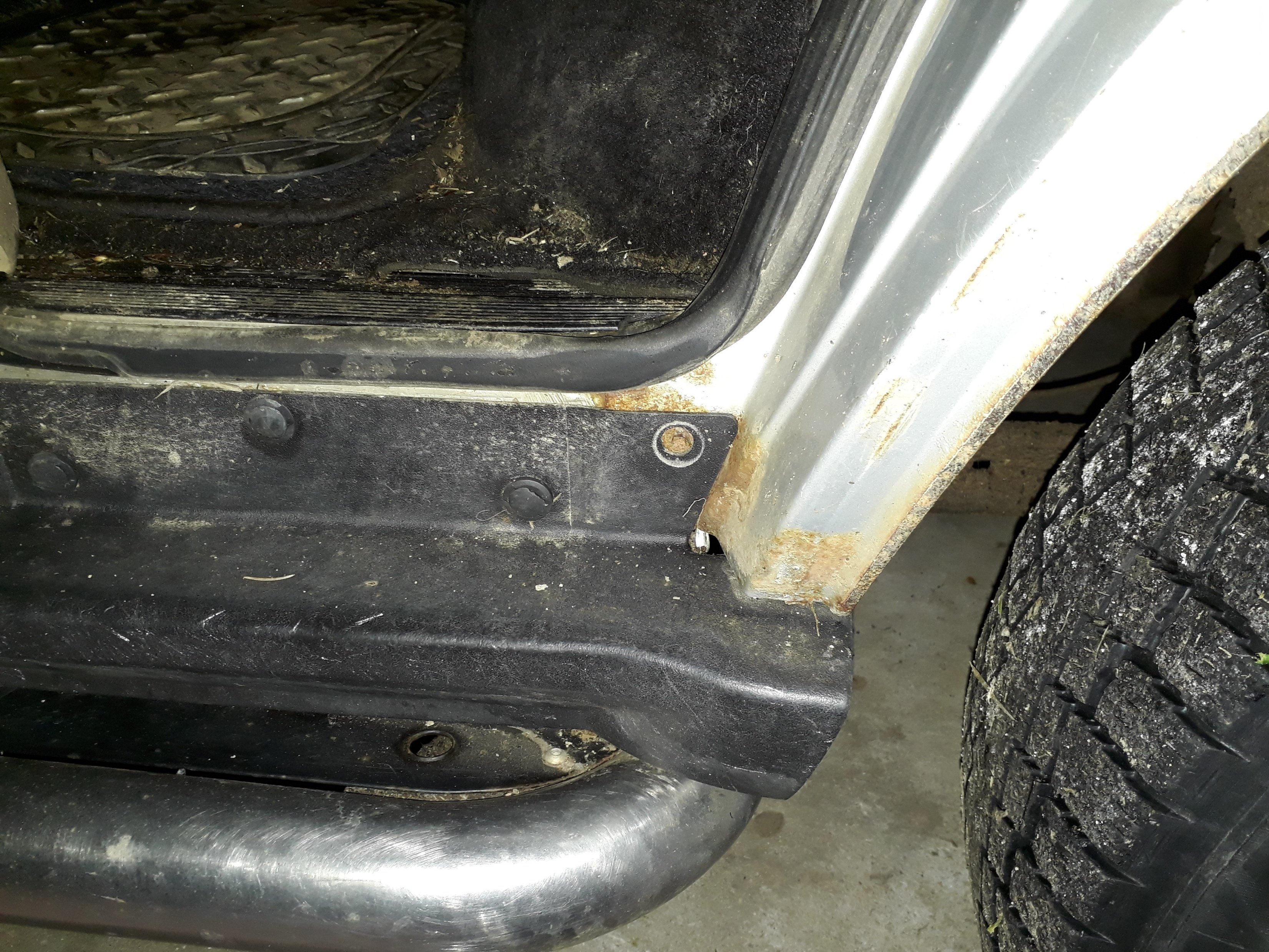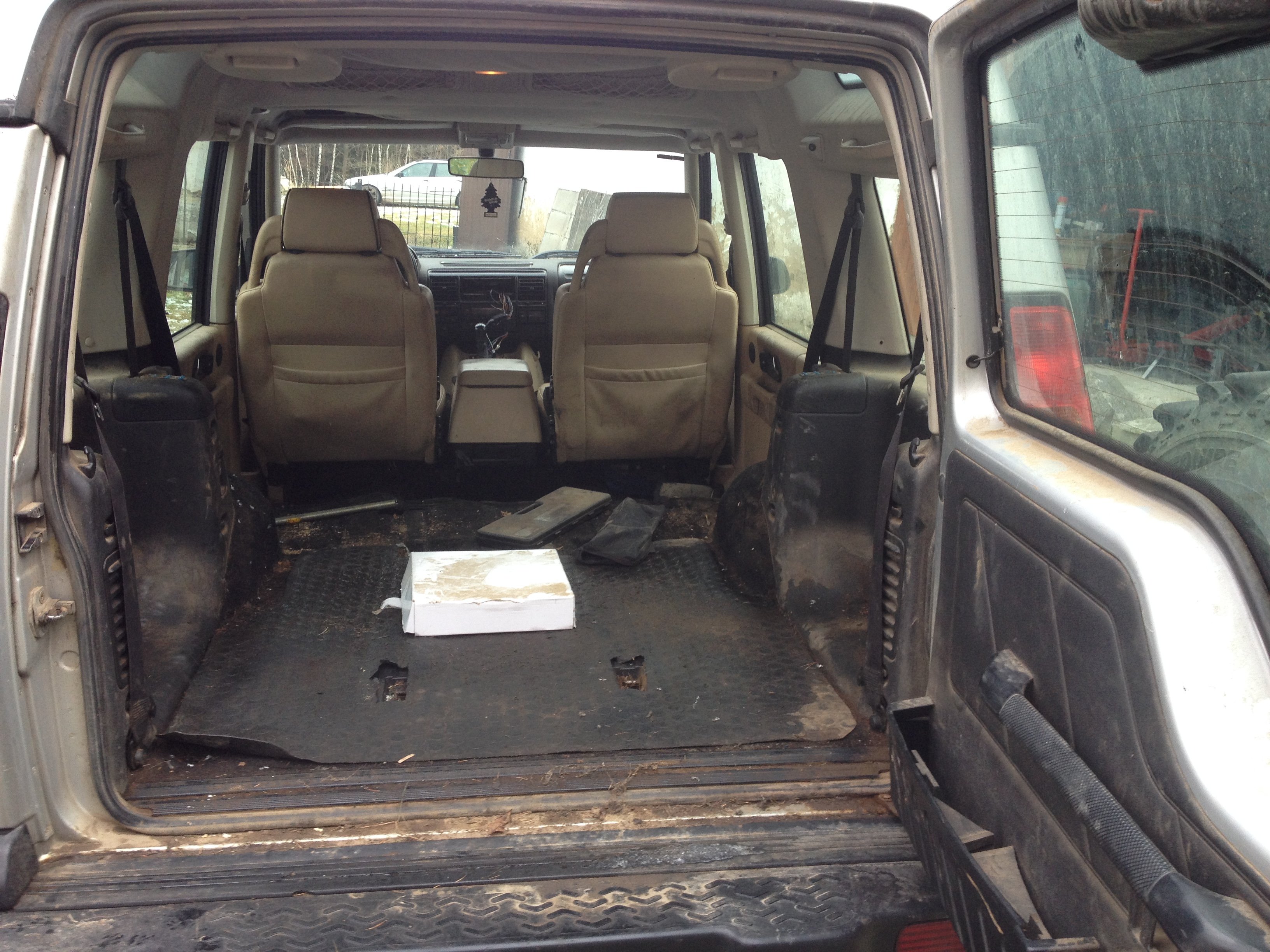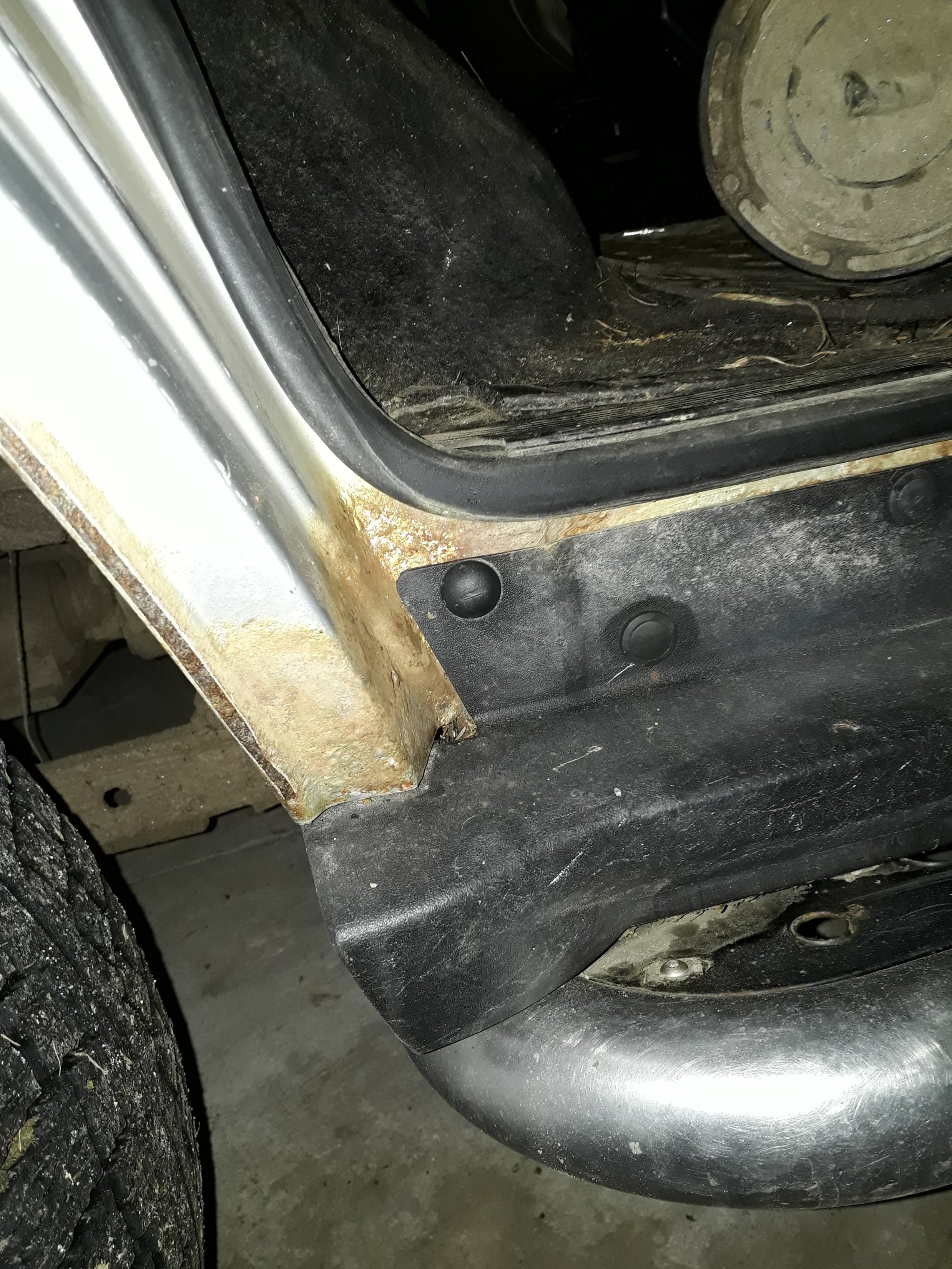 Ty sedačky, co v tom nejsou, k tomu jsou. Mám obavy o stav koberců, jestli nejsou promaštěný. To auto obsluhovalo stroje v lese, takže nějaký kanistr s olejem nebo naftou už určitě potkalo. Zkusím umýt zvenku, vyházet ty volný koberečky a nechám to vyschnout, což je v aktuálním počasí trochu oříšek, ak budu informovat. Přední nárazník je mrtvej, tak ja je, drží pohromadě, ale zachránit do parády už rozhodně nepujde. Nicméně ostřiky světel a mlhovky myslím jsou. Zadní dveře dole špatné (zatím nejhorší oxidace - koroze, co je na autě vidět) a padají na pantech, ne nějak smrtelně, ale je to už cítit.