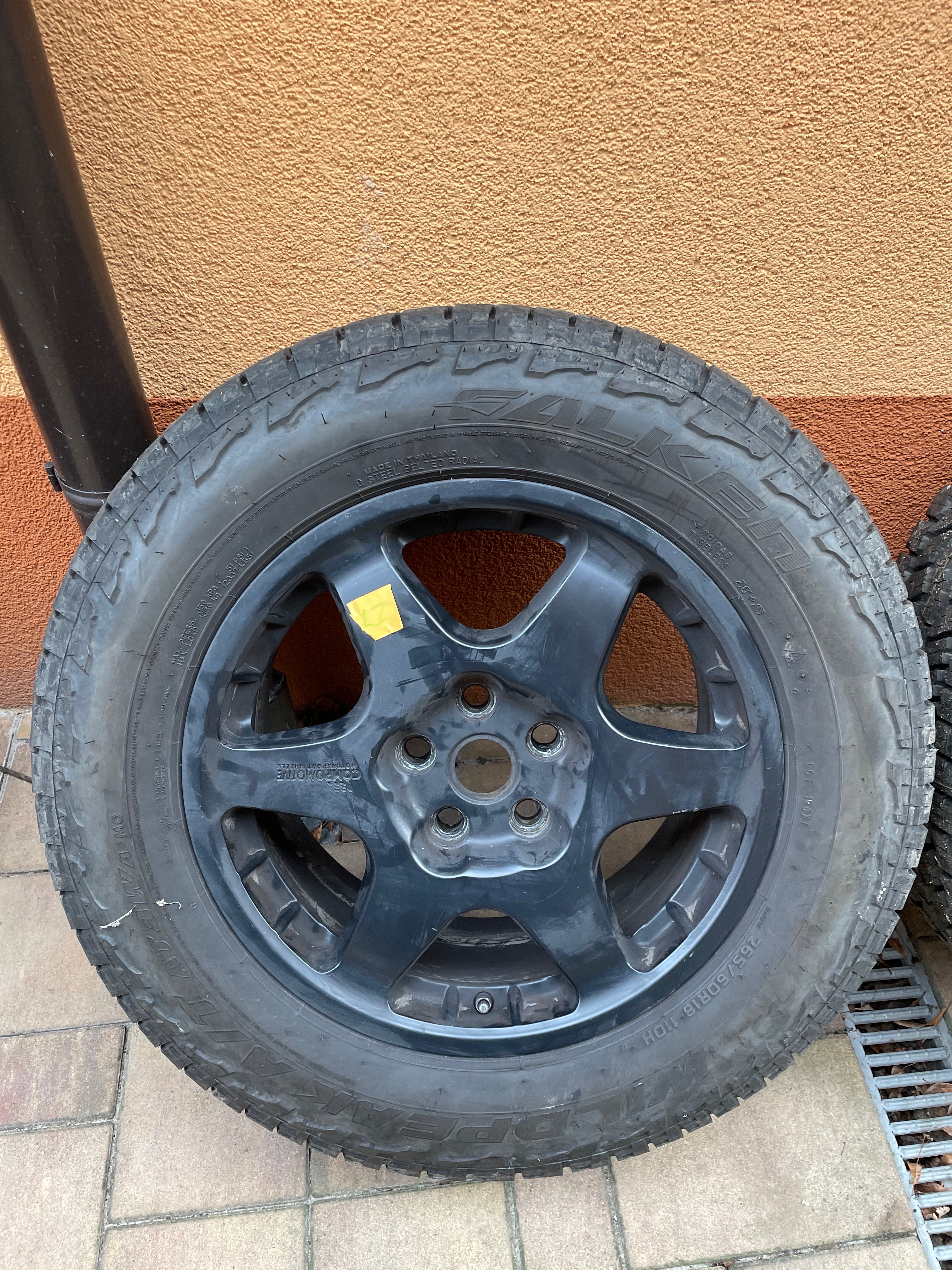 Ahoj, Prodam komplet kola r18 Compomotive (5ks).Pasují na D4 bez úprav. Na kolech jsou pneu Falken wildpeak AT kupované letos vzorek je na 90%. Panu jsou i na zimu mají “vločku”. Pokud máte někdo zájem, dejte vědět, je škoda aby nejezdily.