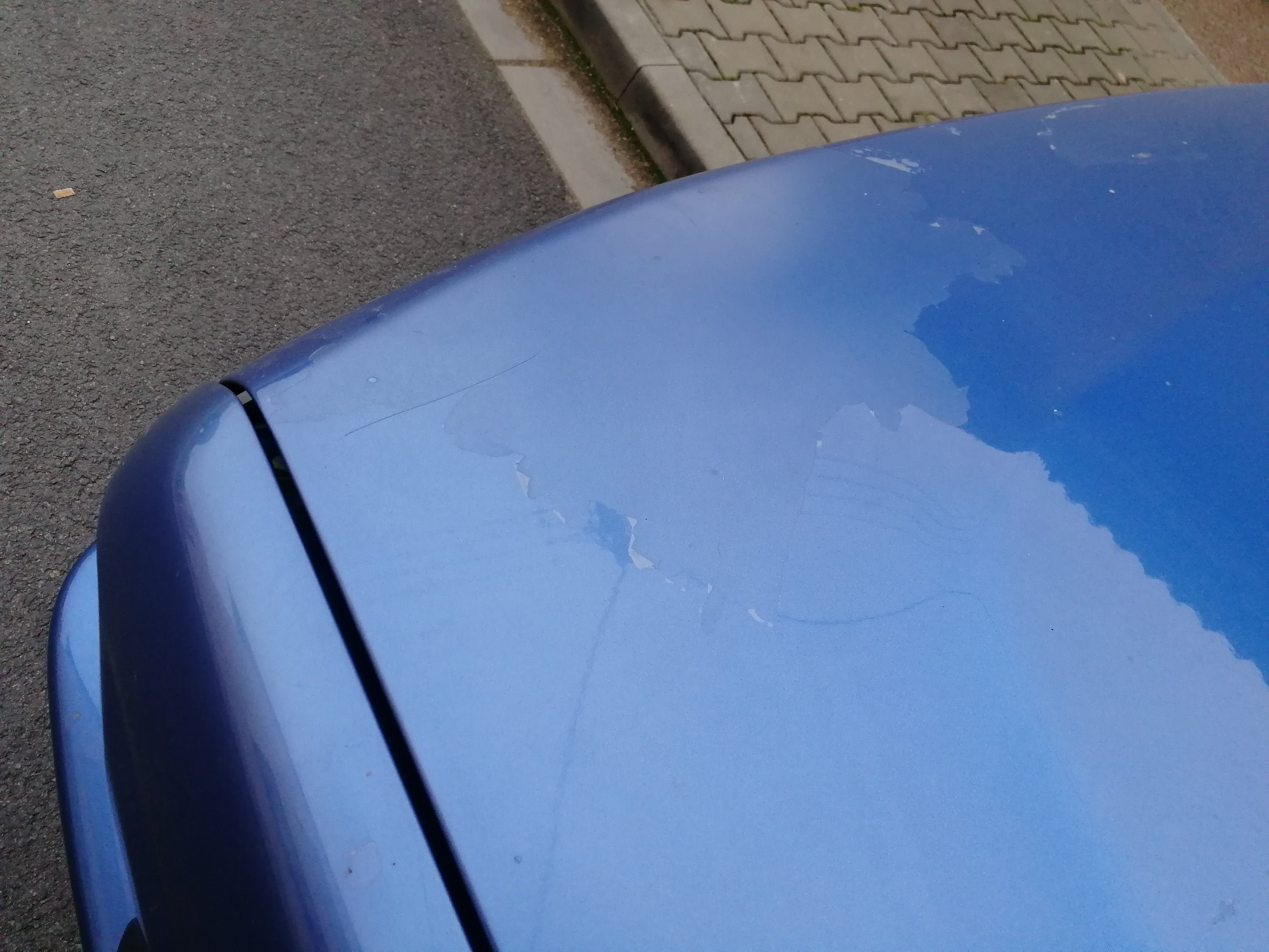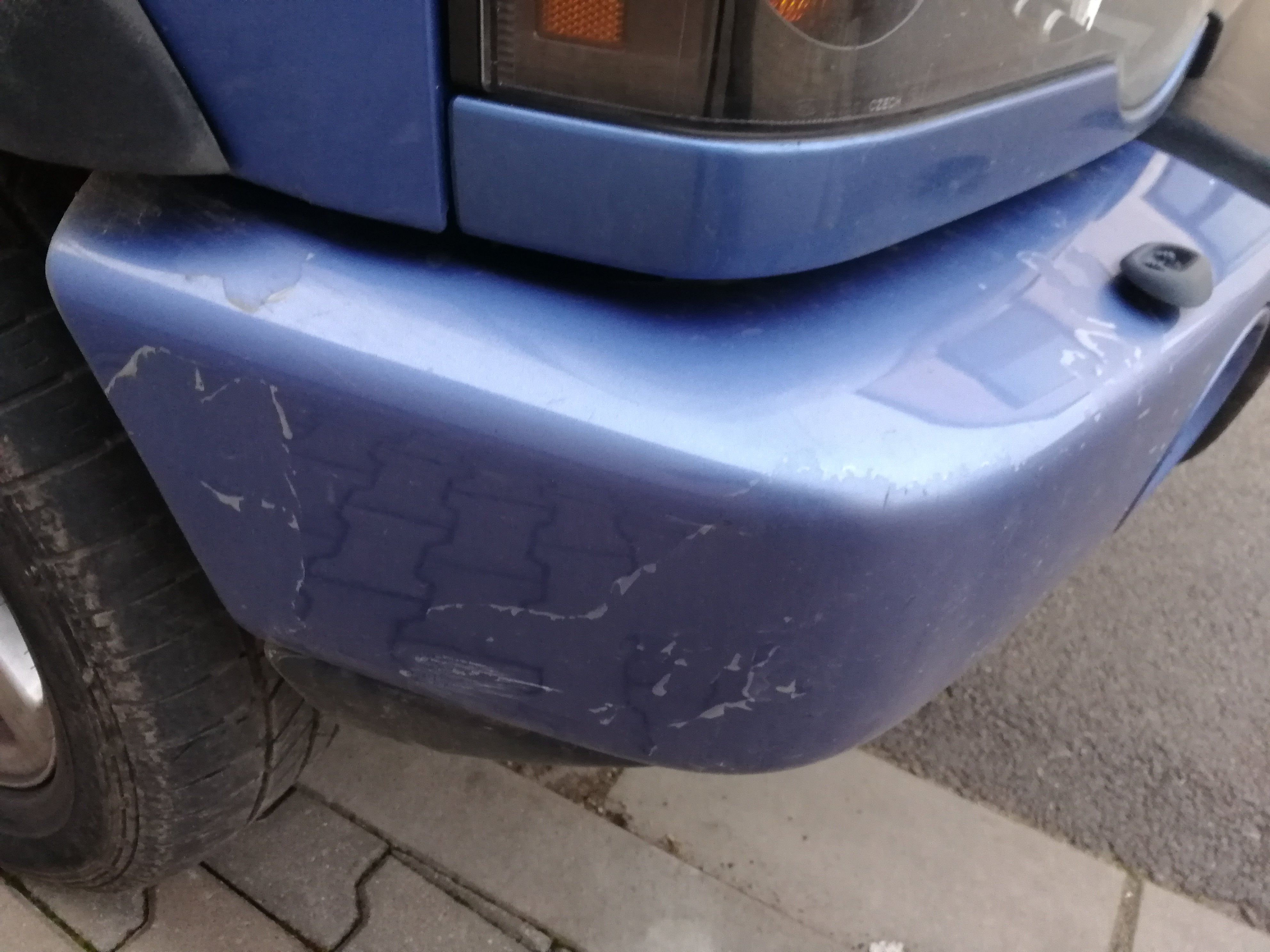 Přední a zadní nárazník je trochu popraskaný, místy se loupe vrchní lak (př.nárazník, kapota, blatník), na čelním okně je prasklina a nevyhřívá - je to mimo stíranou plochu. Zadní levý blatník je trochu ťuknutý.