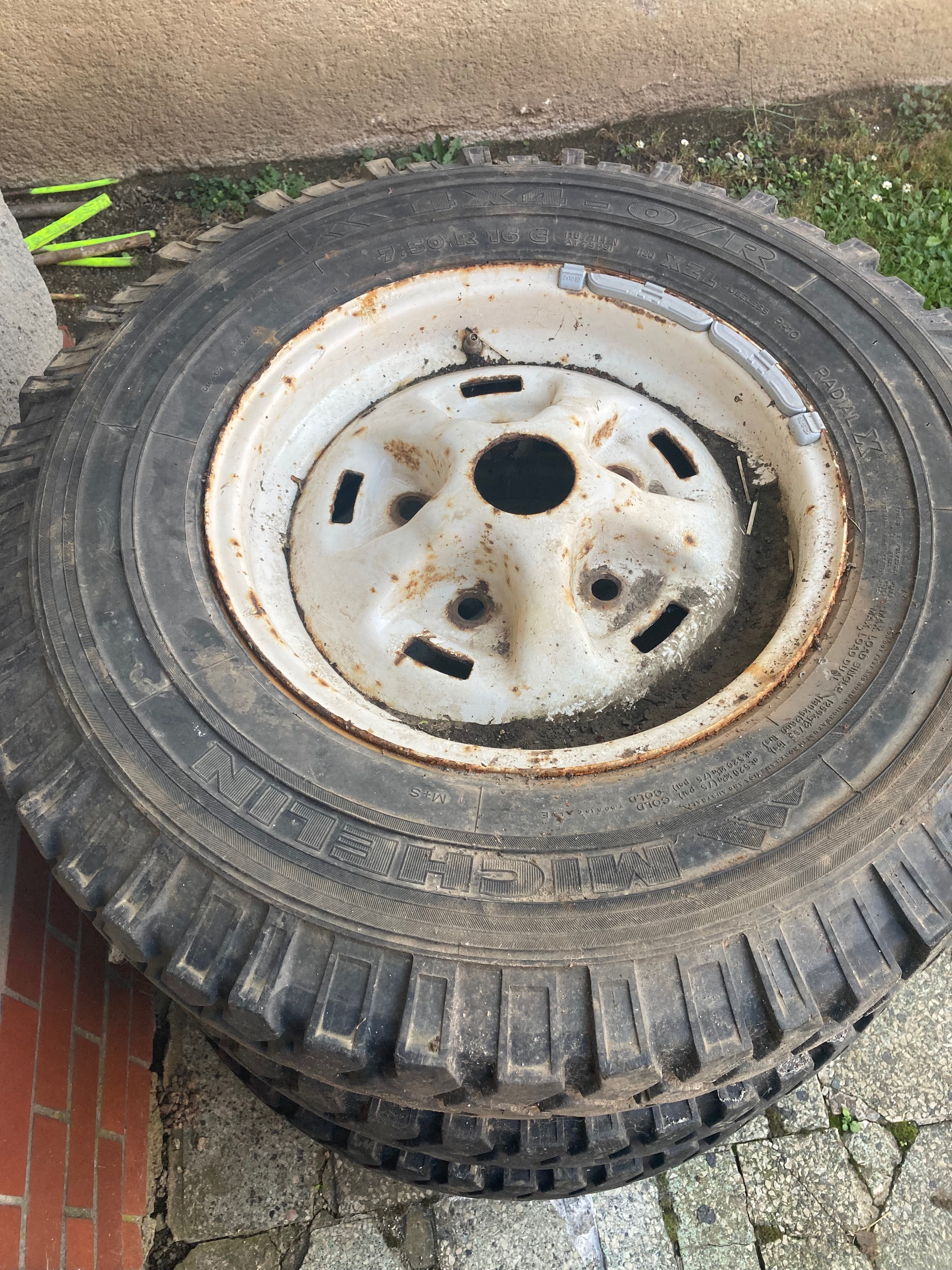 Pneu michelin XZL 7,5r16 na diskoch 4ks, komplet sada skrutiek na plechove disky, unášač kardanu, rozvodová sada 300tdi ale bez kladiek, prevodka riadenia LHD ( naša)