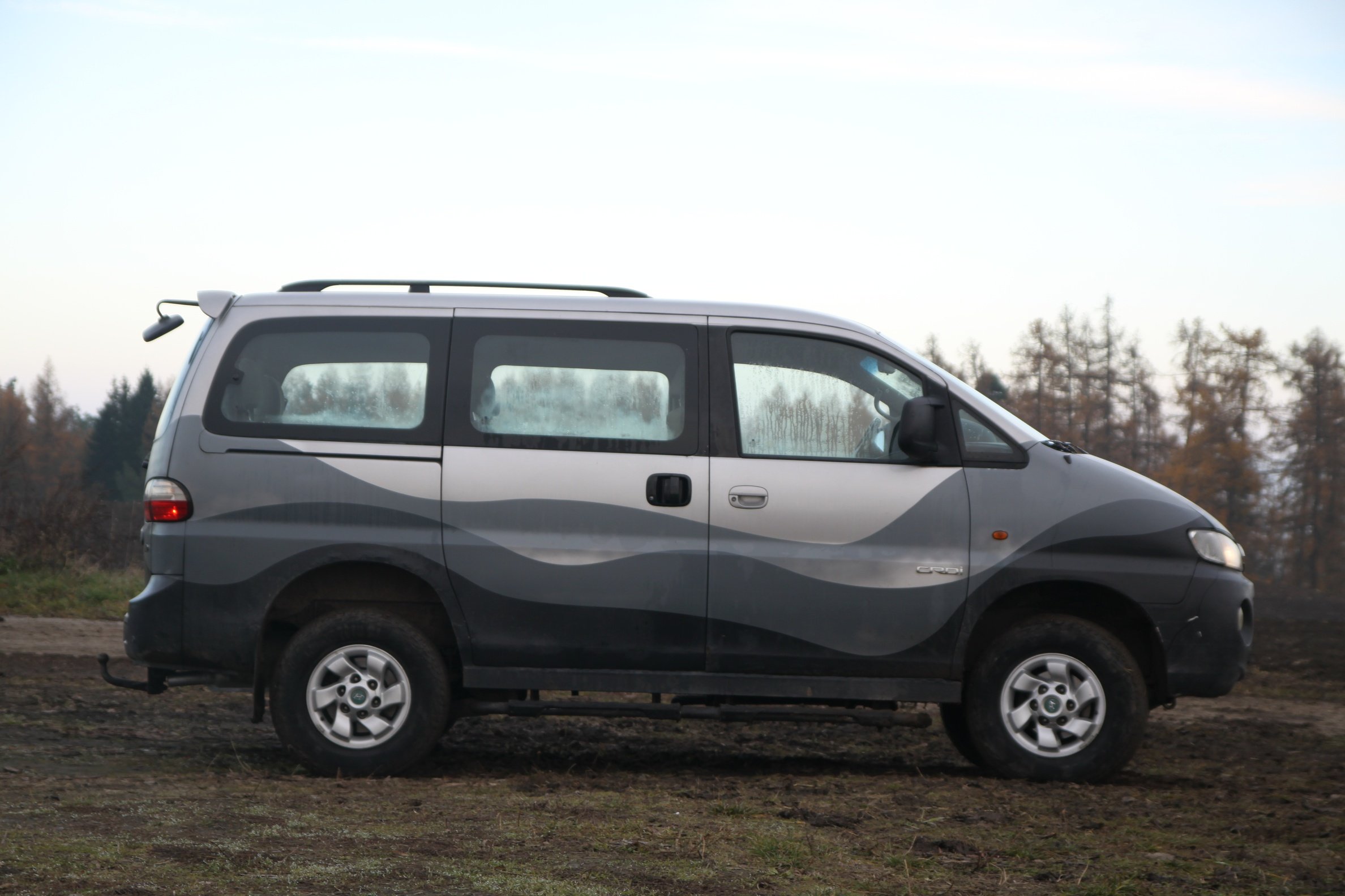 Neuvěřitelná korejská kombinace offroadu a dodávky. Opravdu klasického offroadu s pohonem zadní (pevné) nápravy, připojitelným pohonem předních kol a redukcí. A na něm karosérie dodávky/minibusu, v mém případě s 9 místy. Variabilita interiéru úžasná, prostřední lavice posuvná, zadní trojsedadlo sklopné do boků (viz foto). Všech 9 míst v pohodě pro dospělé osoby (možná prostřední vpředu poněkud s výhradou).