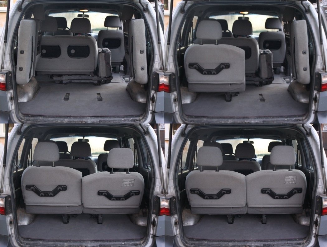 Prostřední je pak samozřejmě spíš pro děti nebo na kratší vzdálenosti, to je i vidět na fotkách. Místo tam je, ale opěradlo je opravdu výrazně menší.