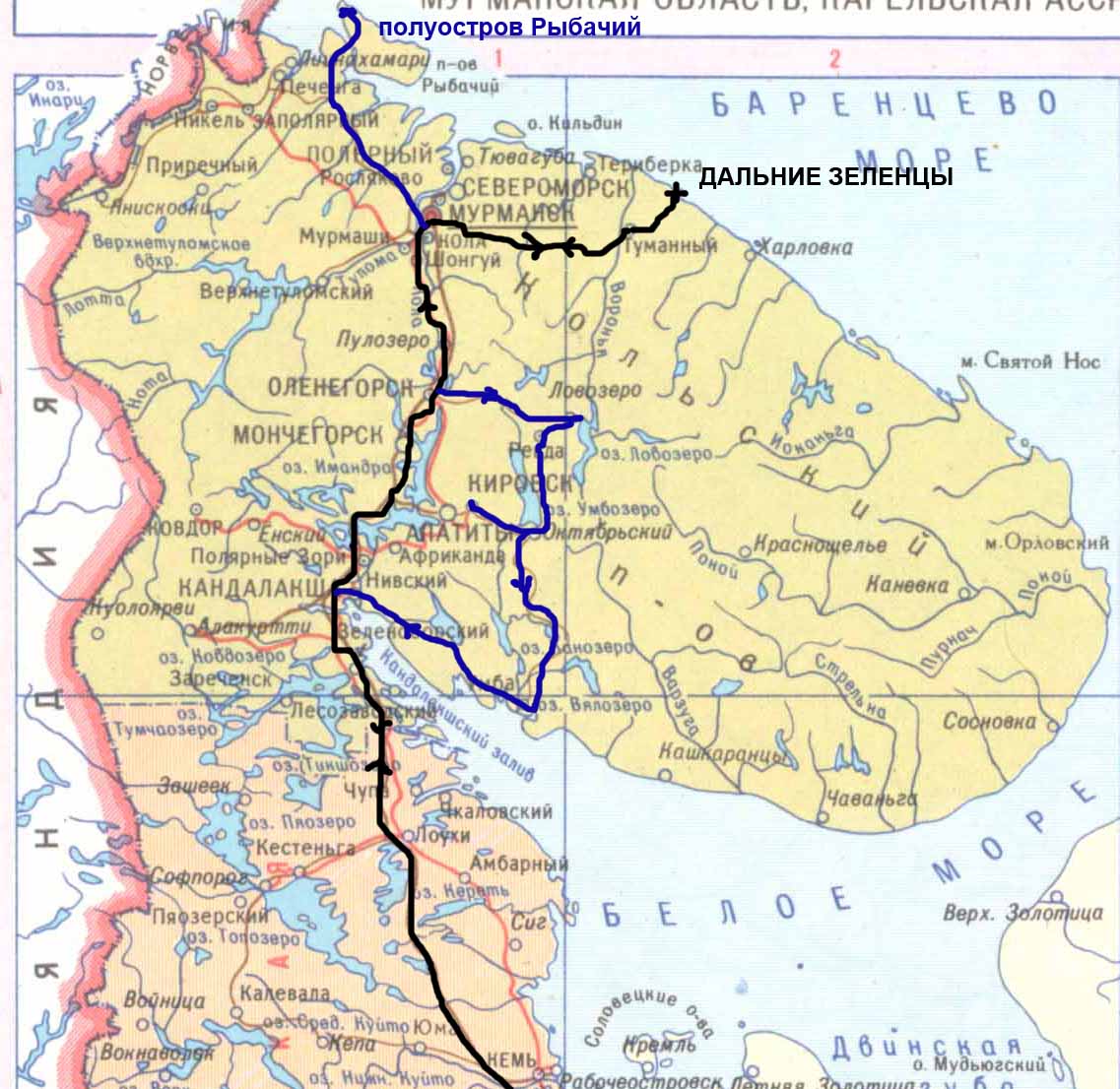 Hlavním cílem je vesnička (sezónně obydlené místo, vědecká stanice) ДАЛЬНИЕ ЗЕЛЕНЦЫ (Daľniye Zelentsy) kousek od Murmanska (cca.160 km) a druhým ПОЛУОСТРОВ РЫБАЧИЙ (poloostrov Rybačij) jako nejsevernější místo v evropském Rusku. Trasa cesty je v přiložených mapkách. Plánuji vyrazit kolem 8.srpna letošního roku. Důvodem konce prázdnin je má partnerka, která je již mnoho let školou povinná :) a hlavně konec léta, ve kterém se vše v tundře začíná barvit do nádherných barev (jen doufám, že polovina srpna stačí).